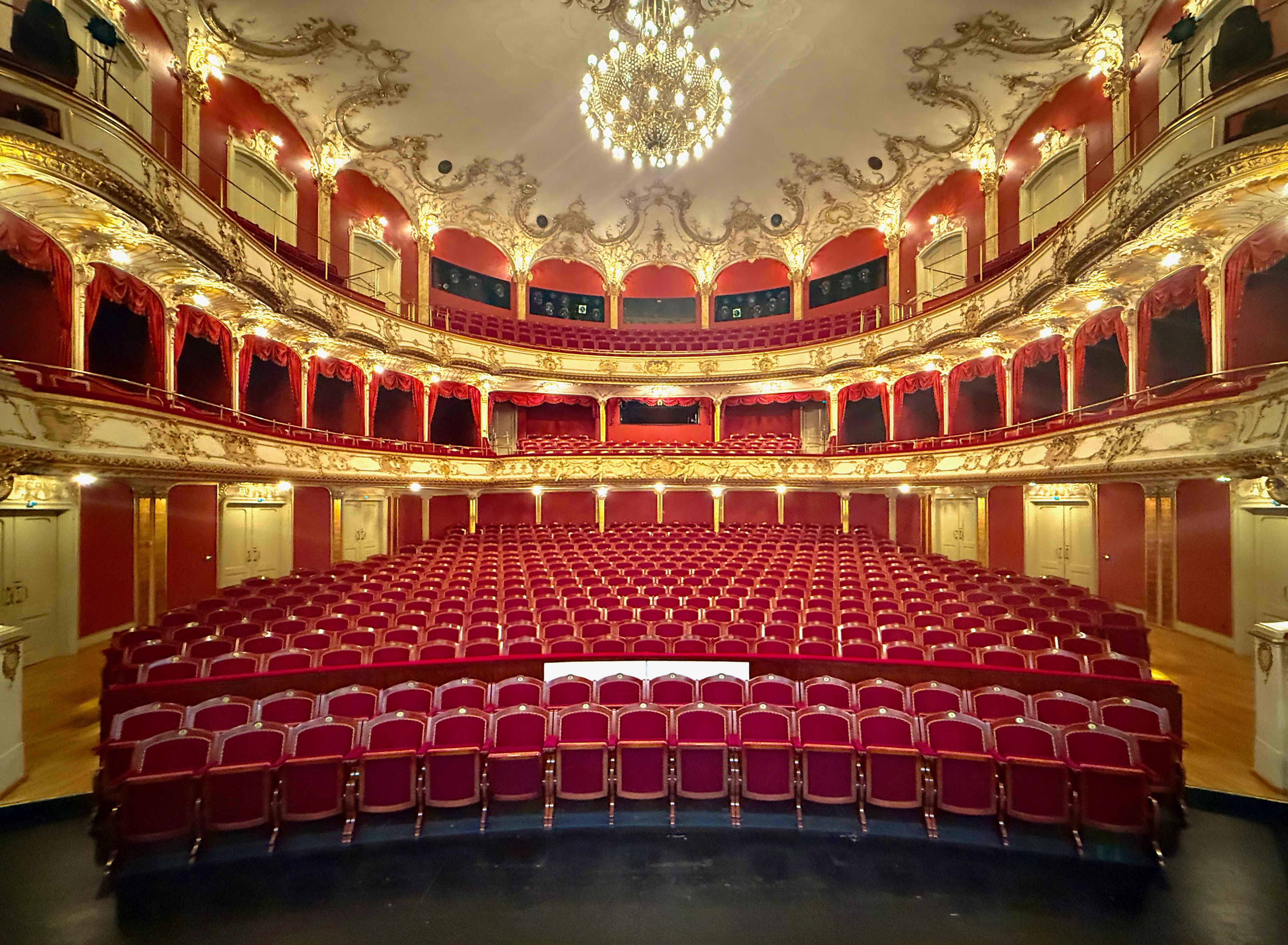| Beschreibung | Stadttheater Fürth im Rahmen einer Theaterführung (Juni 2025) - Blick von der Bühnenkante | ||