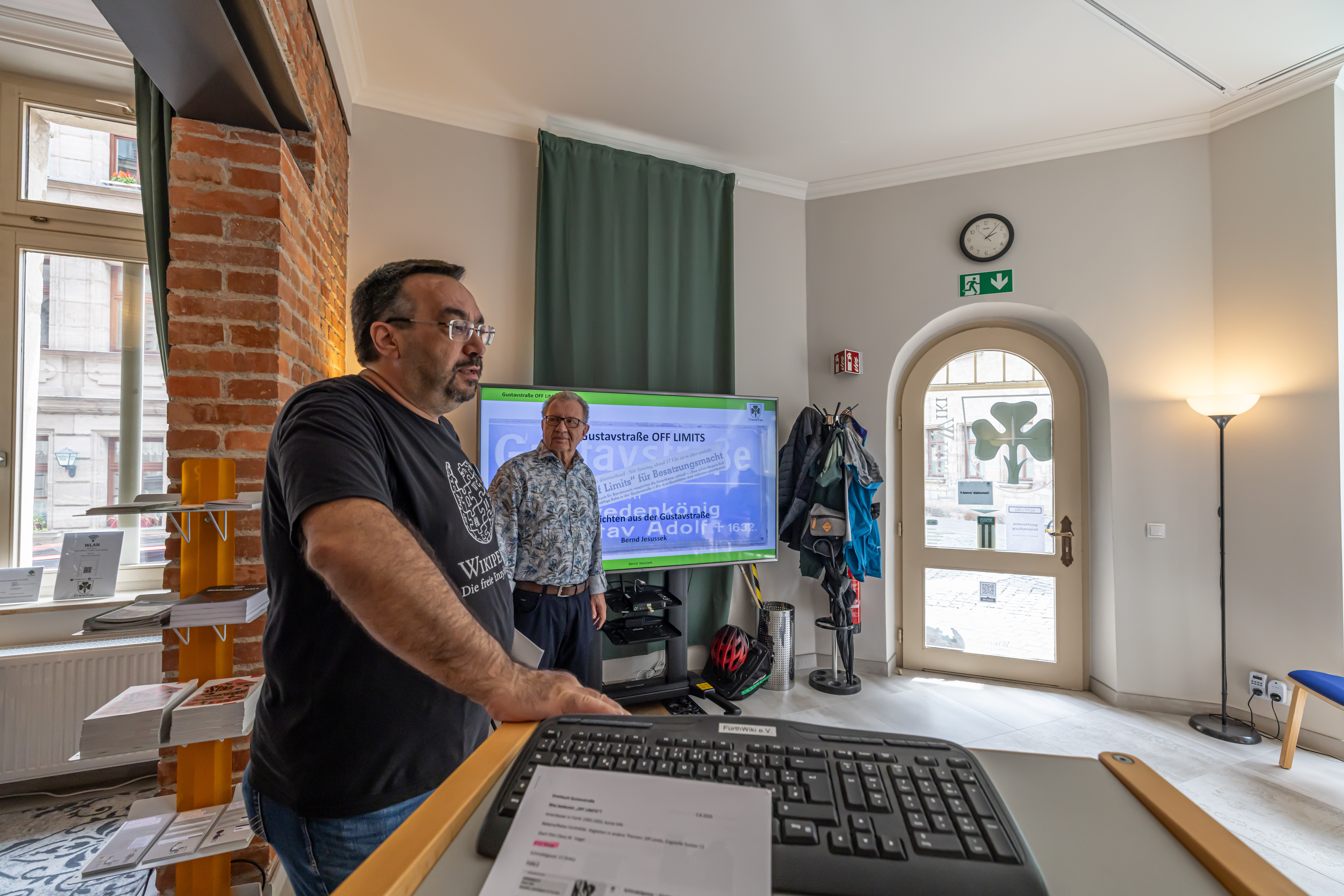 | Dateiinfo (Bild-Unterschrift und Info-Box, automatisch erstellt) | 5 Jahre FürthWiki-Laden: Vorträge (August 2025) Urheber: Claus W. Vogl<br><br>Lizenz: CC BY-SA 4.0 | ||