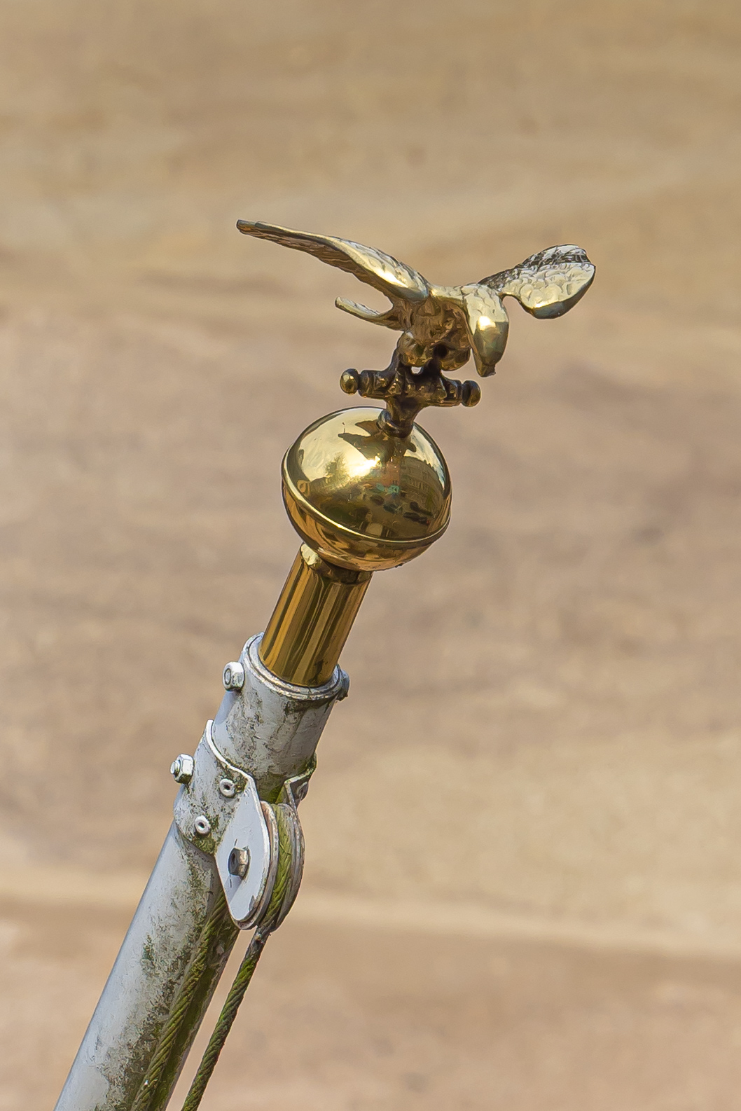 | Beschreibung | Vergoldete Adlerfigur an der Spitze das Fahnenauslegers über dem Eingang des Gebäudes Schießplatz 5 | ||