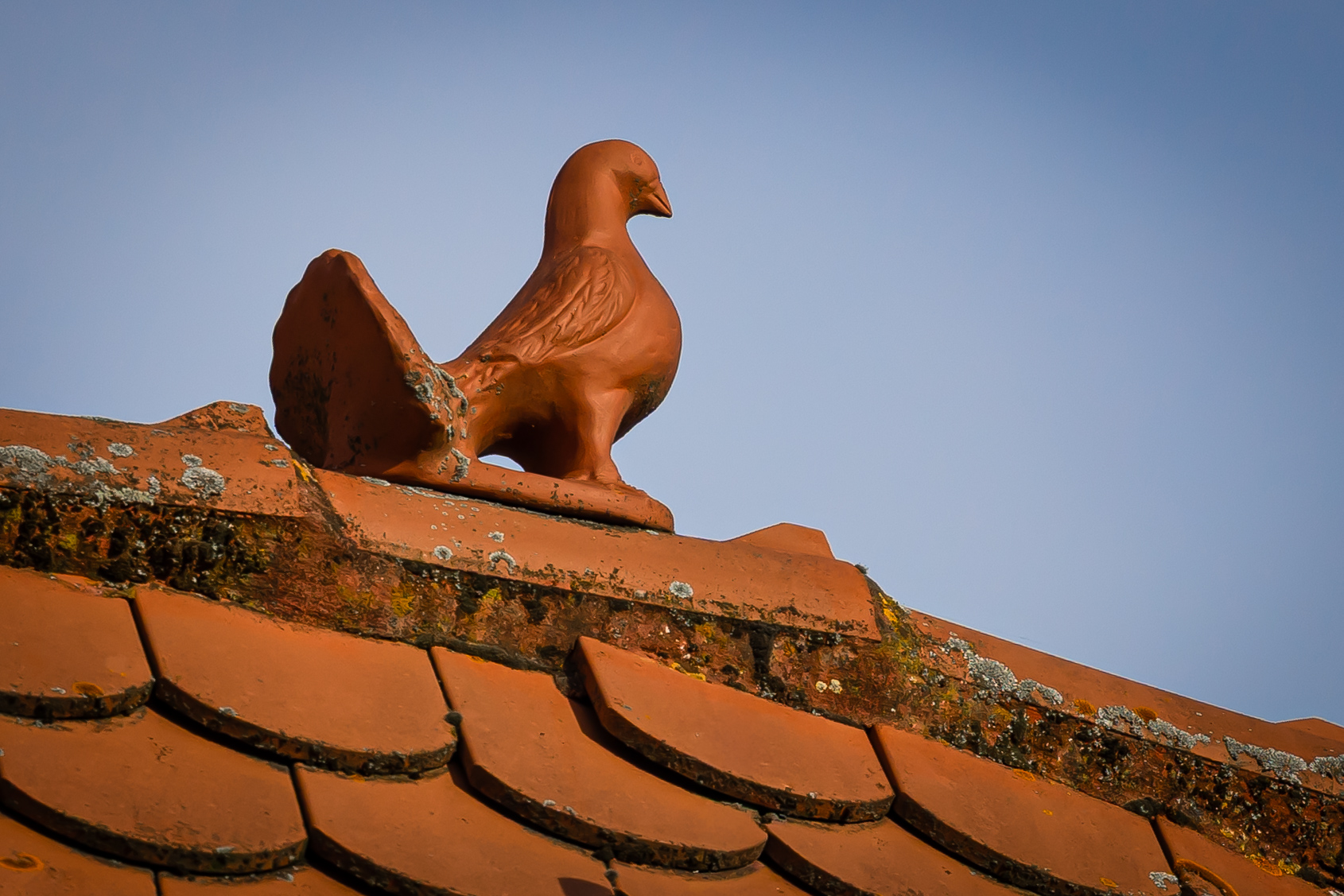 | Beschreibung | Ziegeltaube am First des Gebäudes Königstraße 39 | ||
