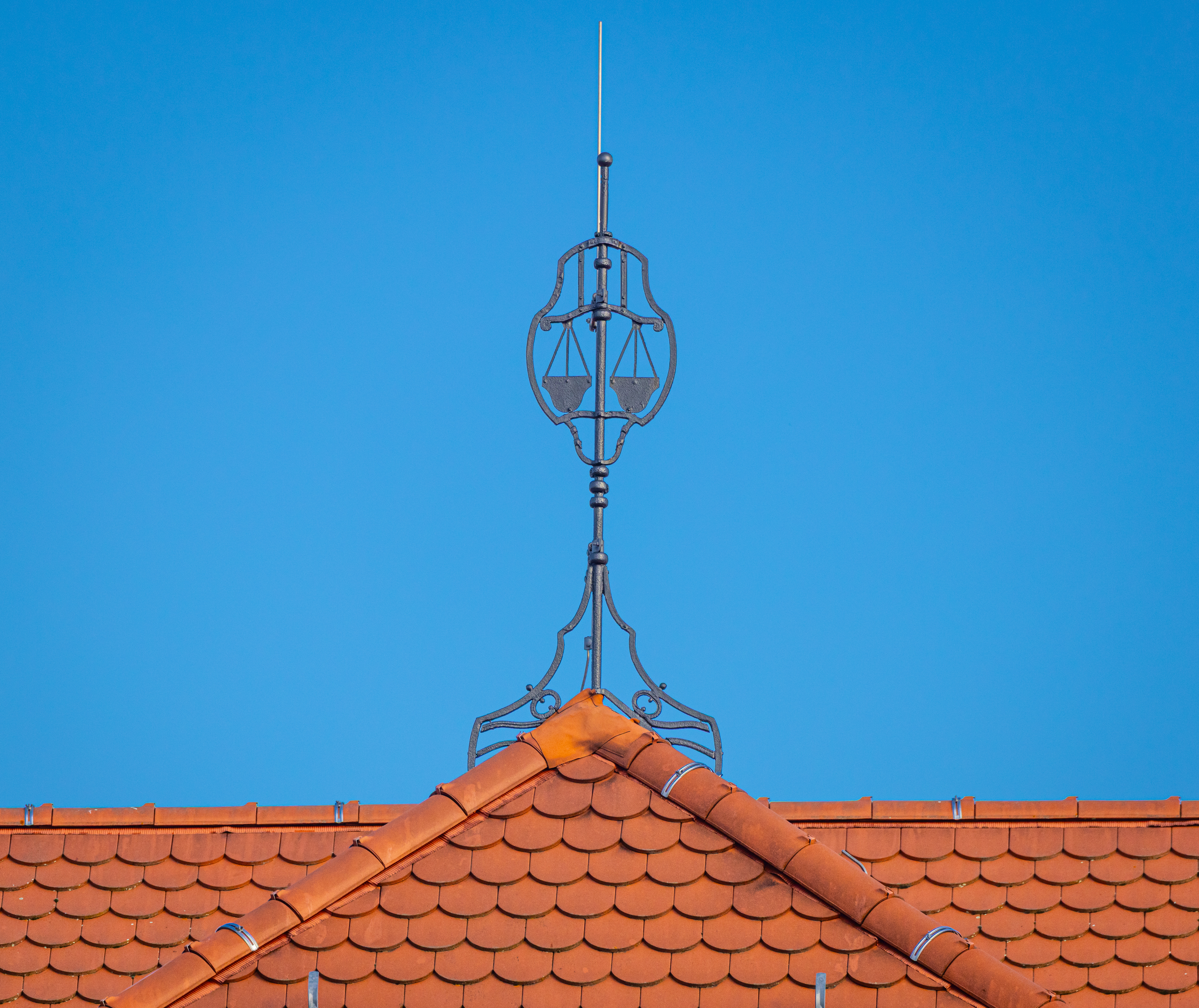 | Beschreibung | Waage als Dachverzierung am Eichamt, Hallplatz 6 | ||