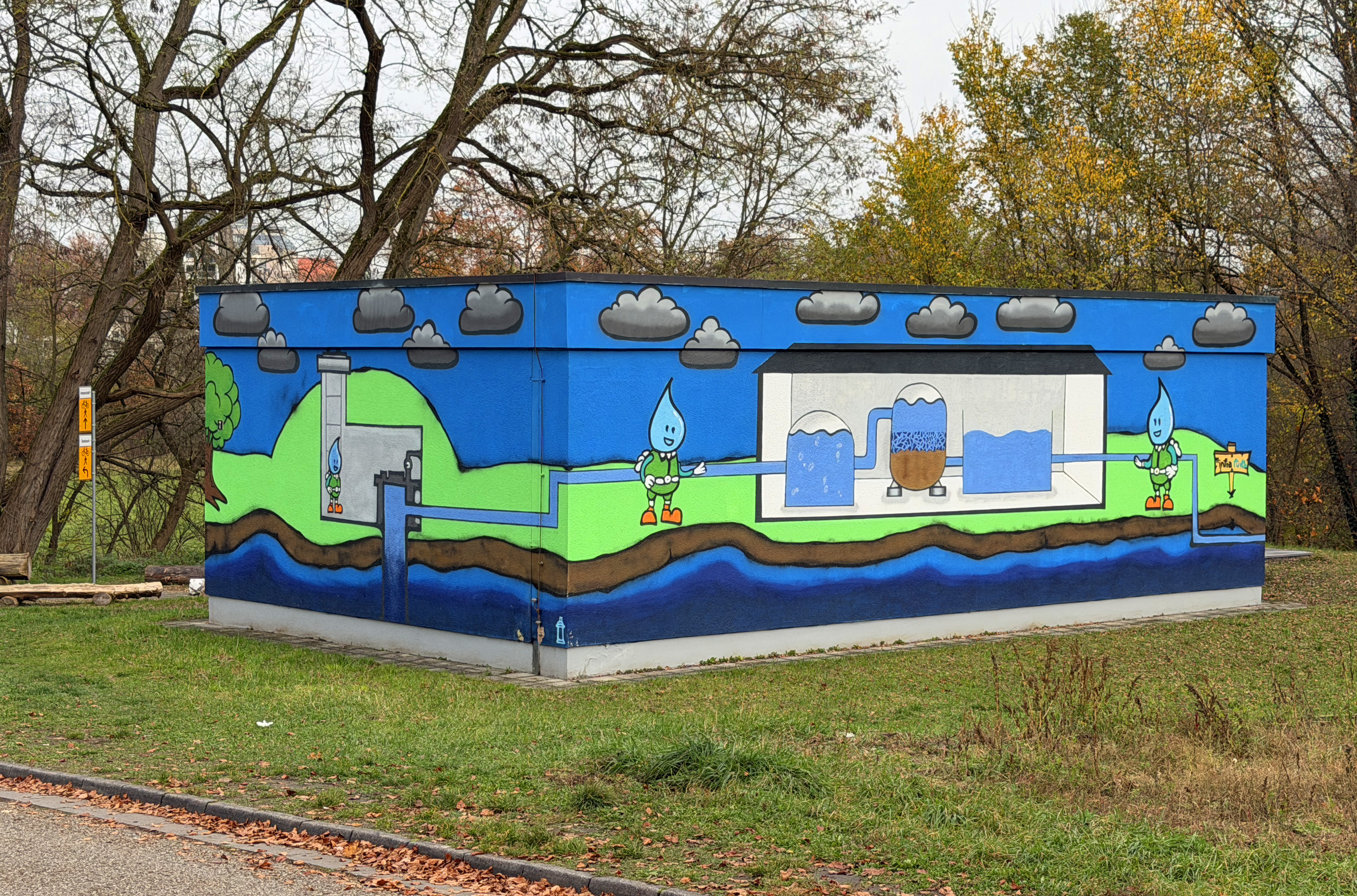 | Dateiinfo (Bild-Unterschrift und Info-Box, automatisch erstellt) | Graffiti am infra-Gebäude Vestner Weg 7 Urheber: Claus W. Vogl<br><br>Lizenz: CC BY-SA 4.0 | ||