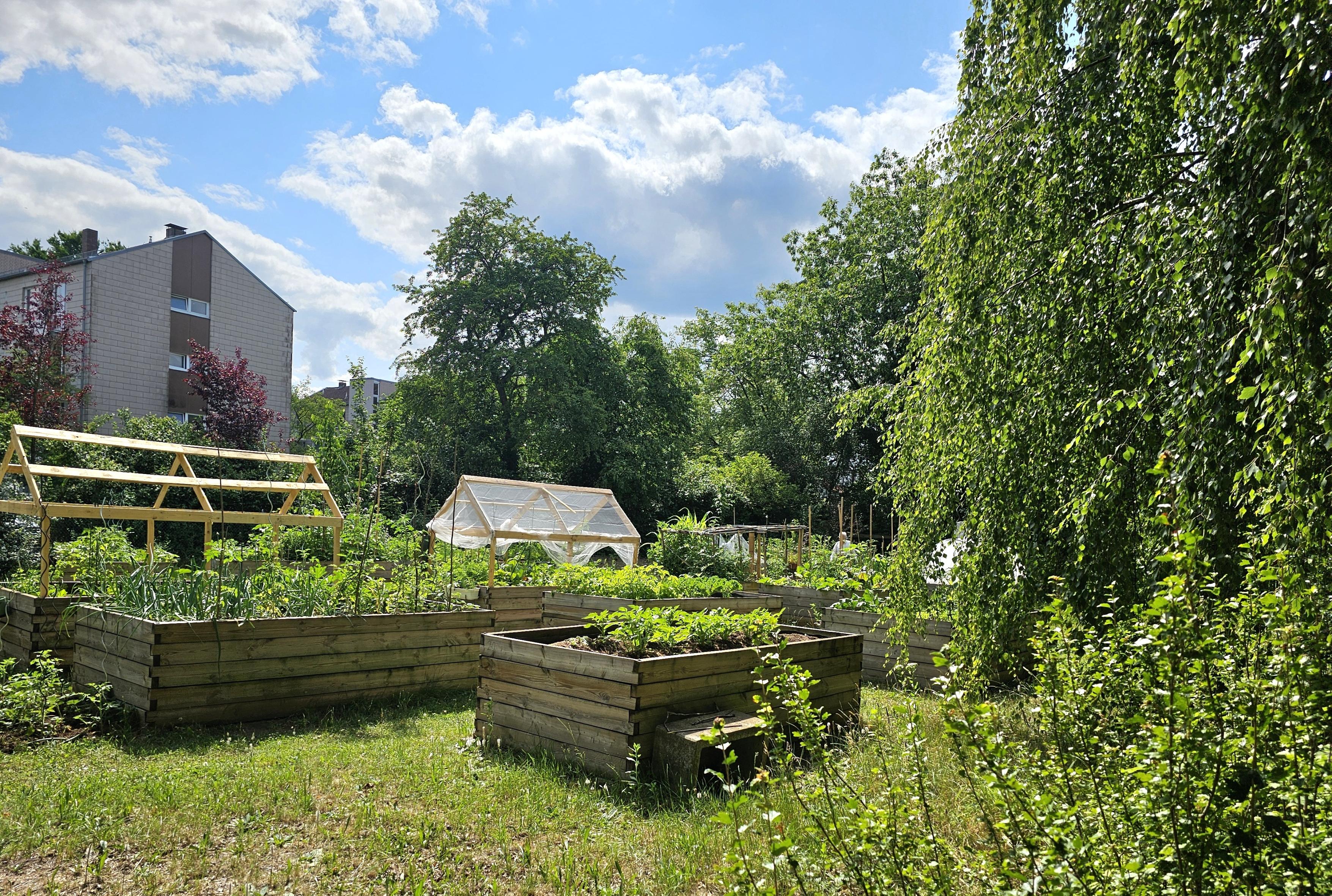 | Beschreibung | Interkultureller Garten in der Gaußanlage Blick Richtung Gaußstraße, Juni 2025 | ||