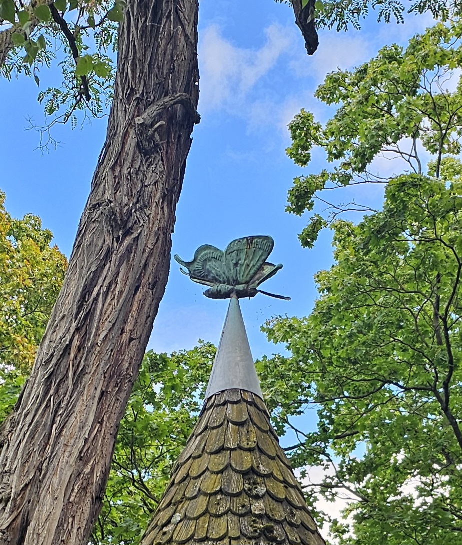 | Beschreibung | Schmetterling aus Bronze auf der kupfernen Spitze des Insektariums im Stadtpark, gestaltet von Hans Kreuzer, September 2025 | ||