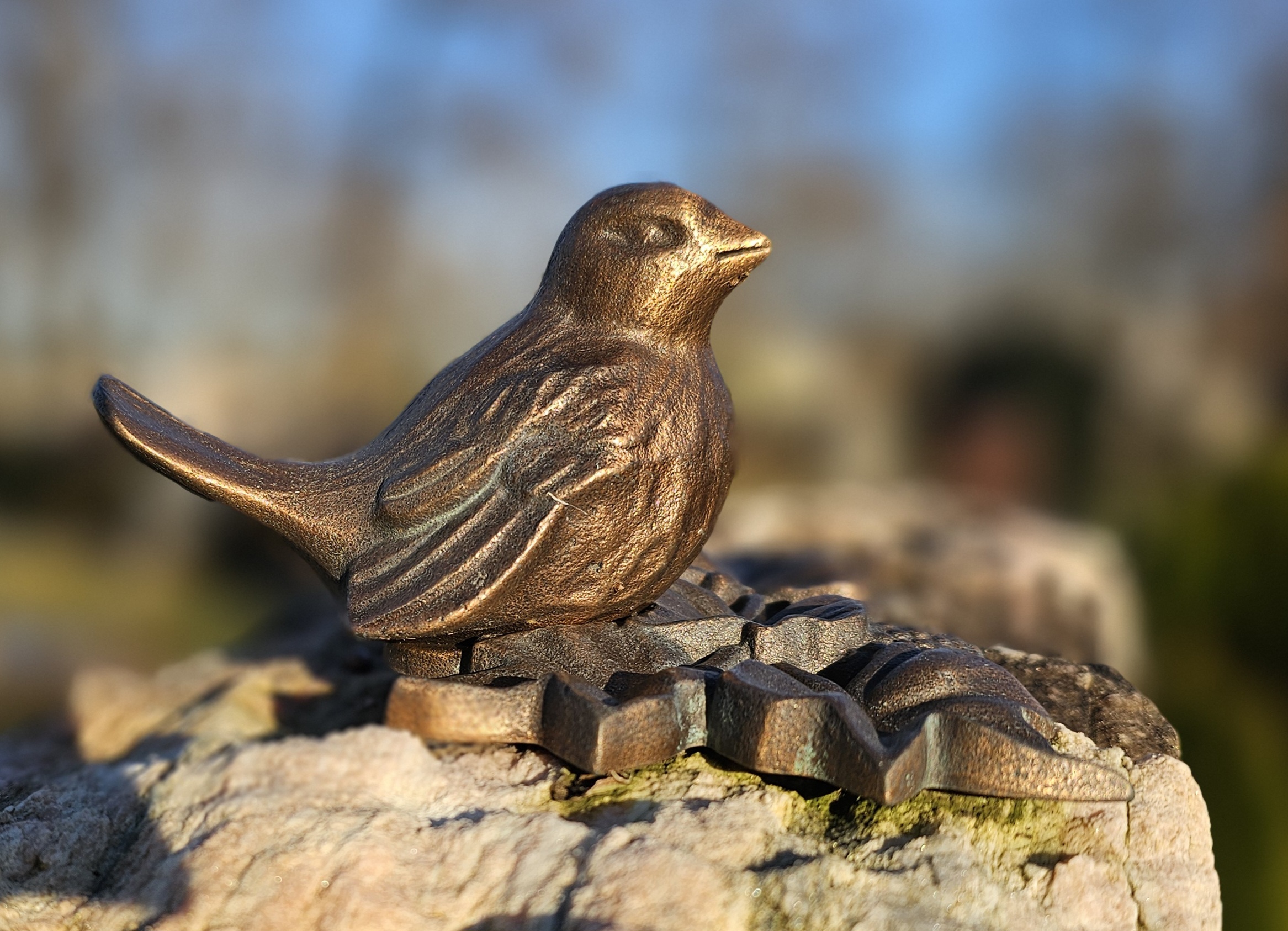 | Dateiinfo (Bild-Unterschrift und Info-Box, automatisch erstellt) | Vogel auf einem Grabmal des Städtischen Friedhofs Fürth, Dezember 2025 Urheber: LadyJ<br><br>Lizenz: copyright | ||