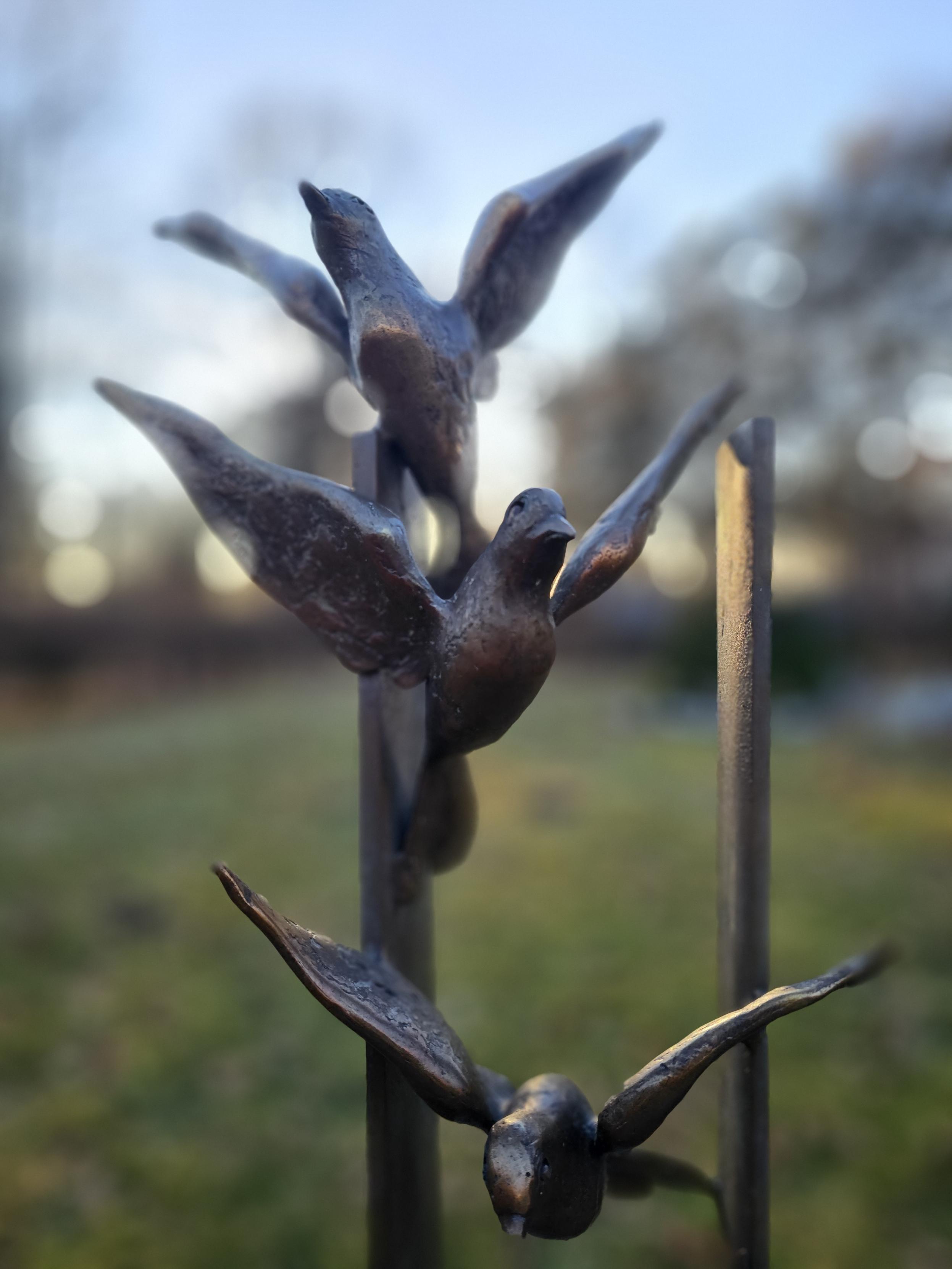 | Beschreibung | Vogelschwarm auf einem Grabmal des Städtischen Friedhofs Fürth, Dezember 2025 | ||
