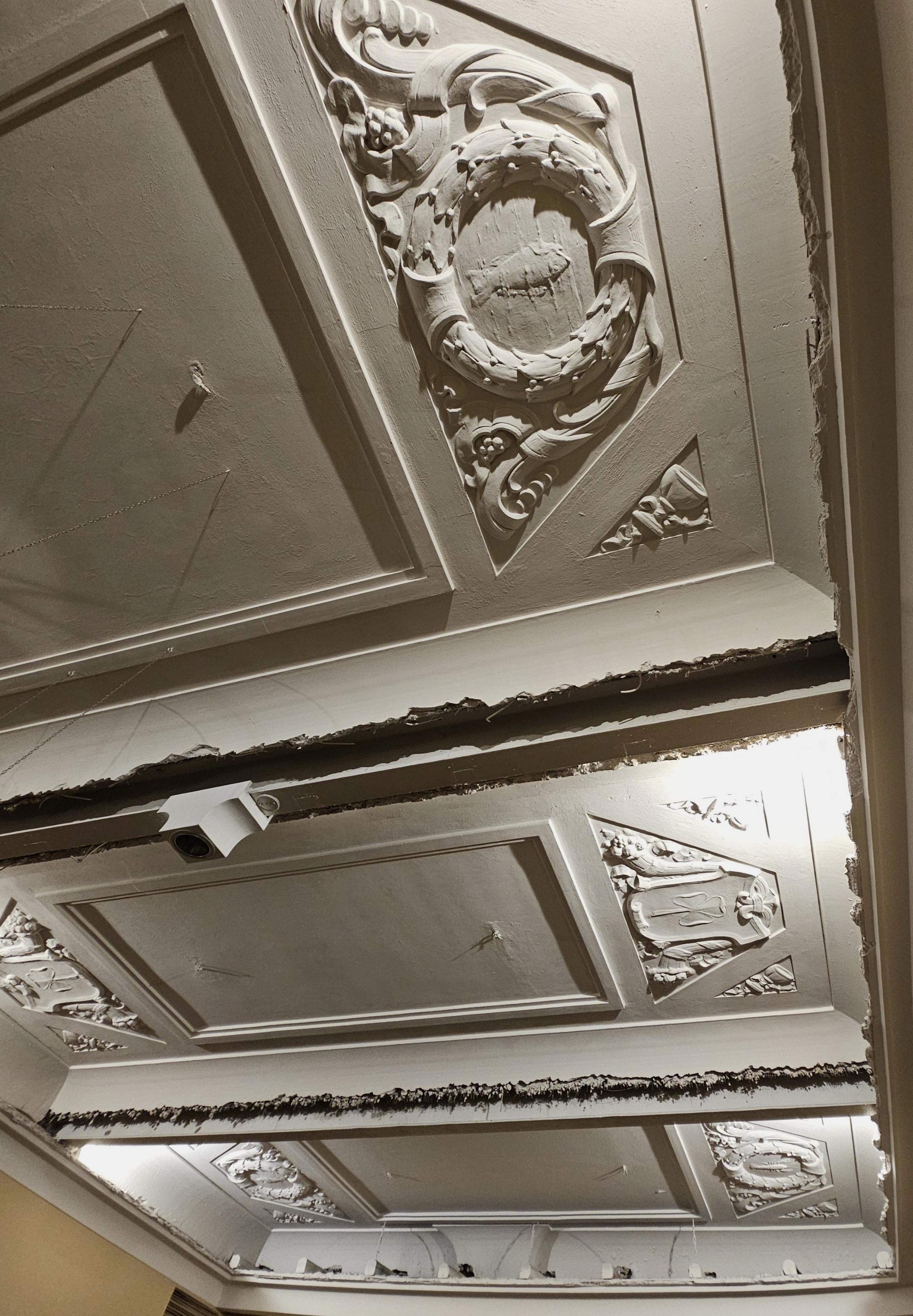 | Beschreibung | Original Stuckdecke im ersten Obergeschoß, freigelegt während der Umbauarbeiten Ende 90-er Jahre, November 2025 | ||