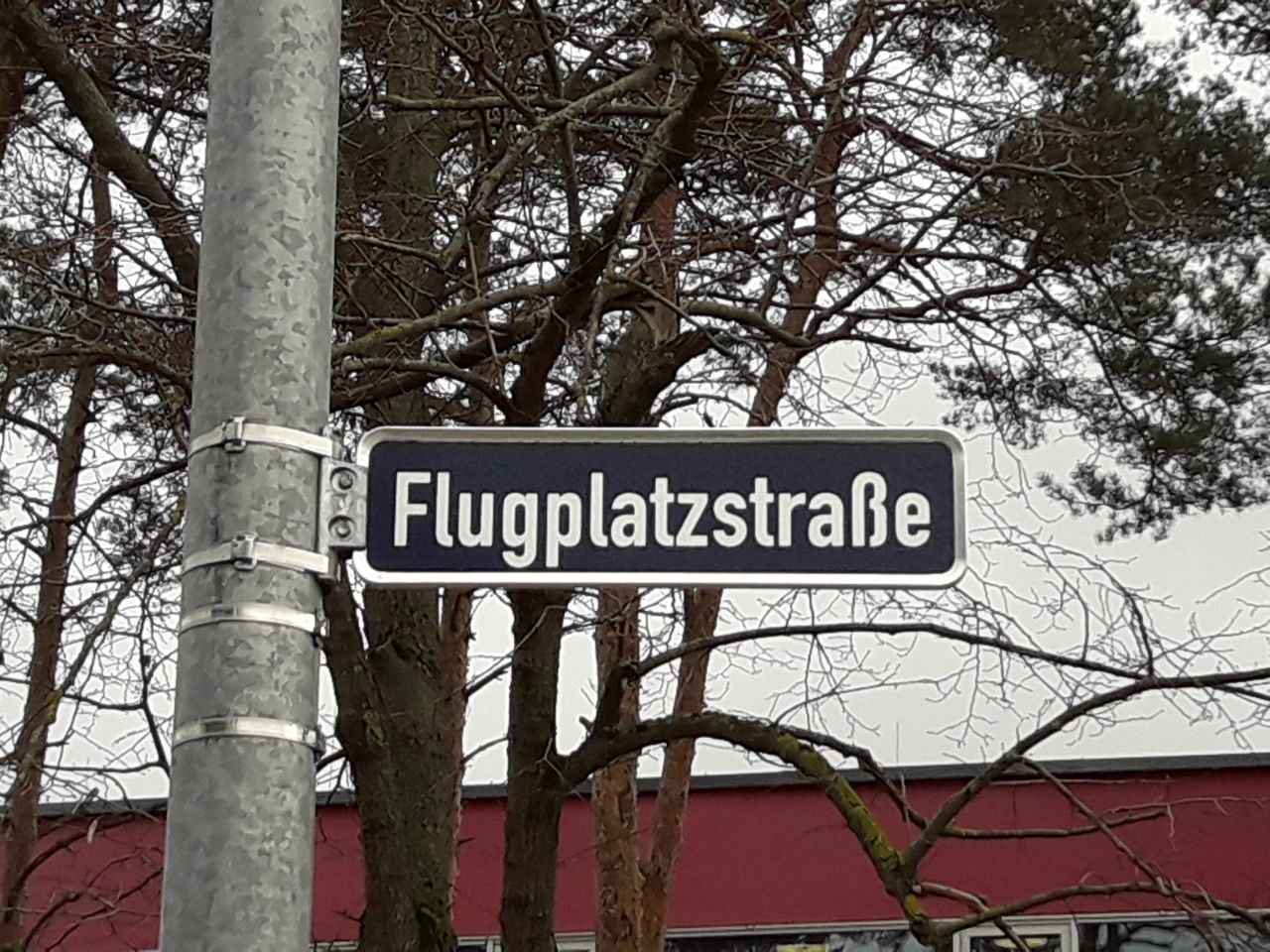 | Beschreibung | Straßenschild Flugplatzstraße | ||