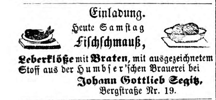 | Dateiinfo (Bild-Unterschrift und Info-Box, automatisch erstellt) | Anzeige von Johann Gottlieb Segitz im Fürther Tagblatt, 14. September 1867 Lizenz: CC BY-SA 3.0 | ||