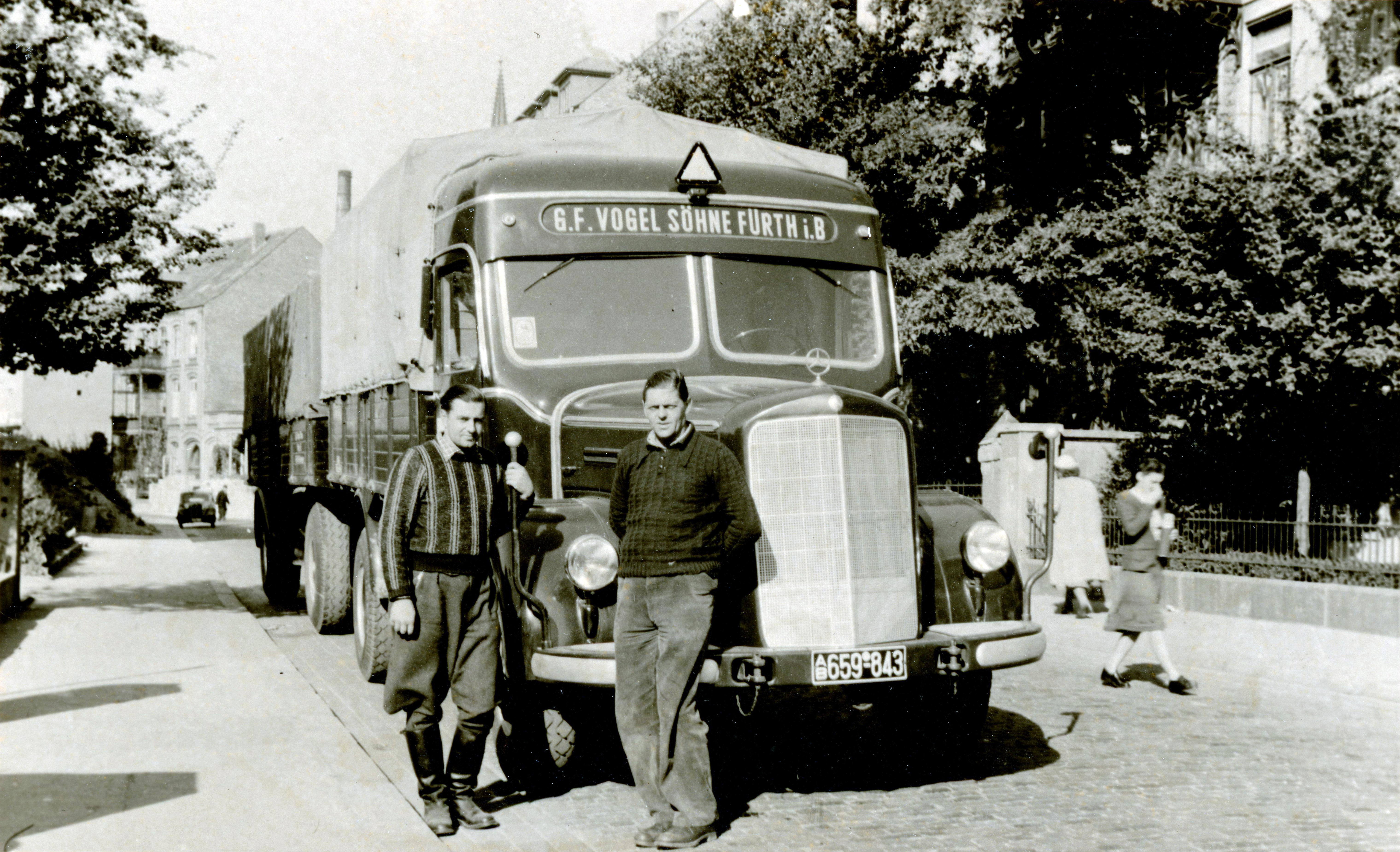 | Beschreibung | Lastkraftwagen des Fuhrunternehmens Georg Friedrich Vogel & Söhne, ca. 1950 | ||