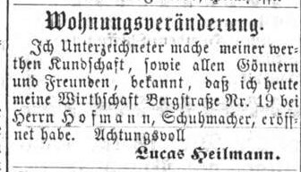 | Dateiinfo (Bild-Unterschrift und Info-Box, automatisch erstellt) | Anzeige Wirtschaftseröffnung L. Heilmann 4.2.1871 Lizenz: CC BY-SA 3.0 | ||