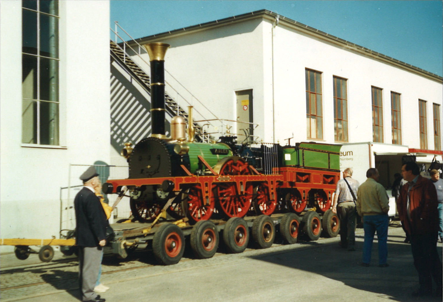 | Beschreibung | Adlernachbau auf Tieflader auf dem Gelände der infra anlässlich des Jubiläums 75 Jahre Busverkehr in Fürth im September 2000 | ||