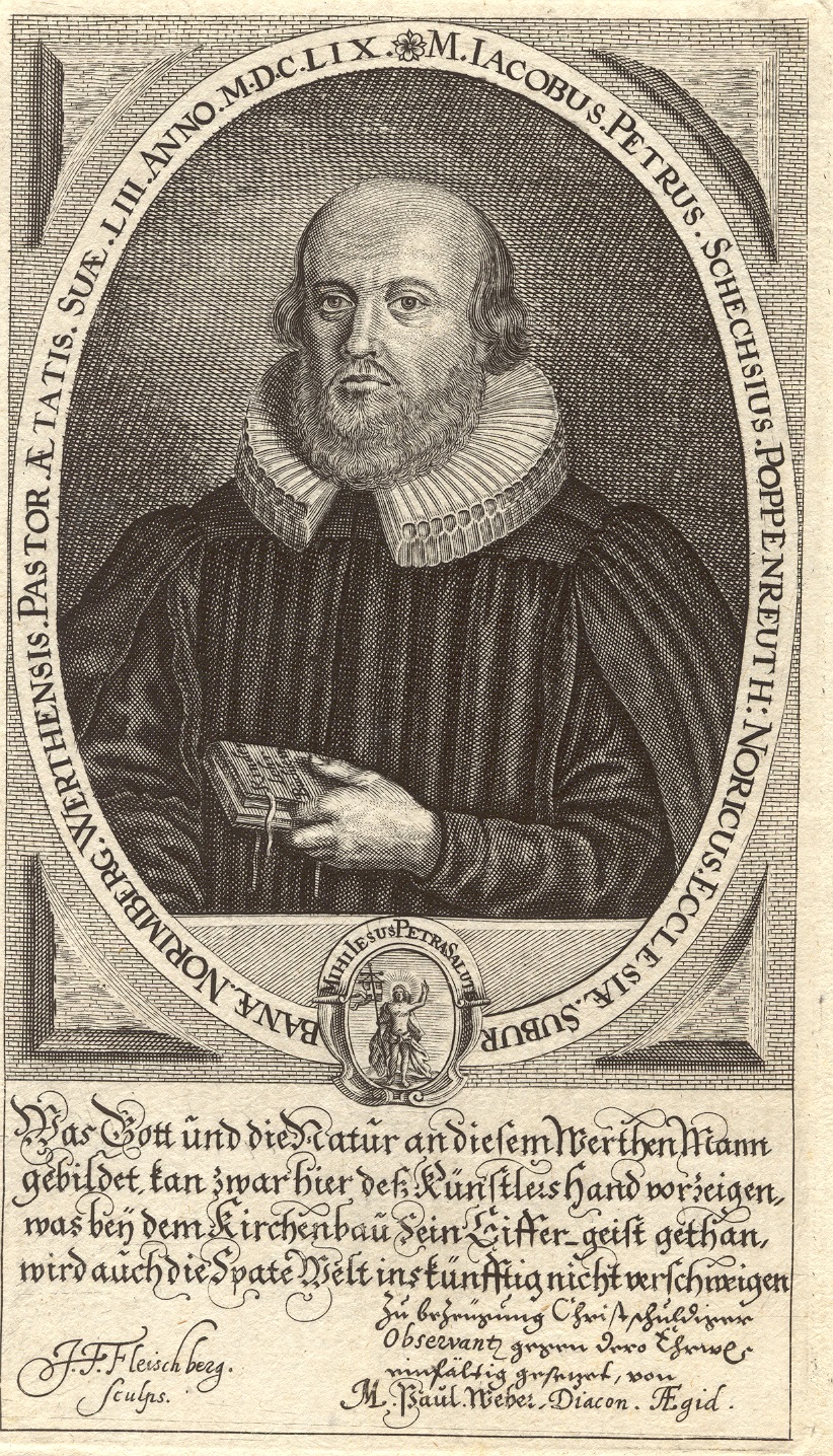 | Beschreibung | Jakob Peter Schechs jr., der Sohn des Poppenreuther Pfarrers gleichen Namens, späterer Pfarrer von Nürnberg-Wöhrd | ||