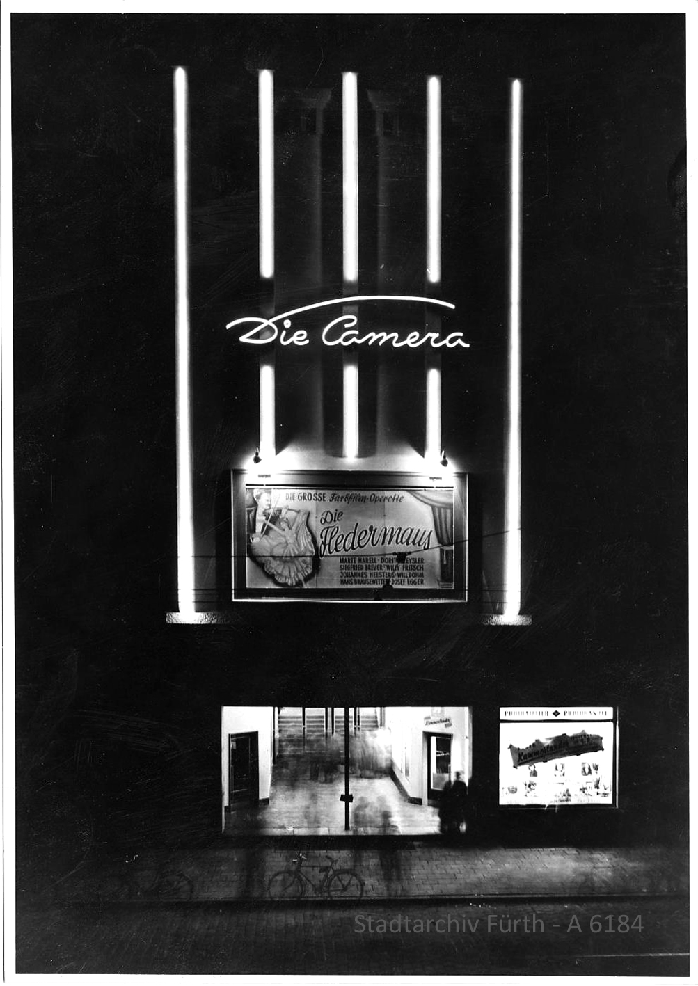 | Dateiinfo (Bild-Unterschrift und Info-Box, automatisch erstellt) | Das Kino "Die Camera", ca. 1951 Urheber: unbekannt<br><br>Lizenz: Bildlizenz-Stadtarchiv | ||