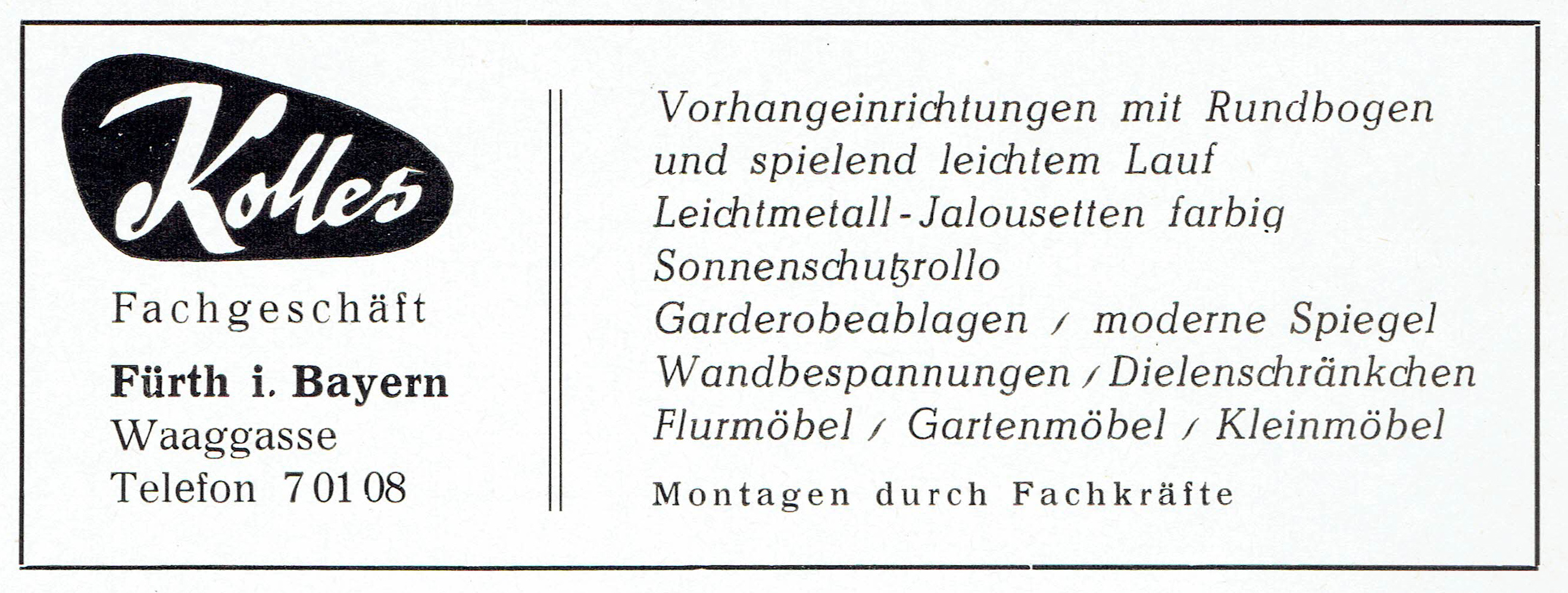 | Beschreibung | Werbeanzeige der Fa. Kolles, März 1959 | ||