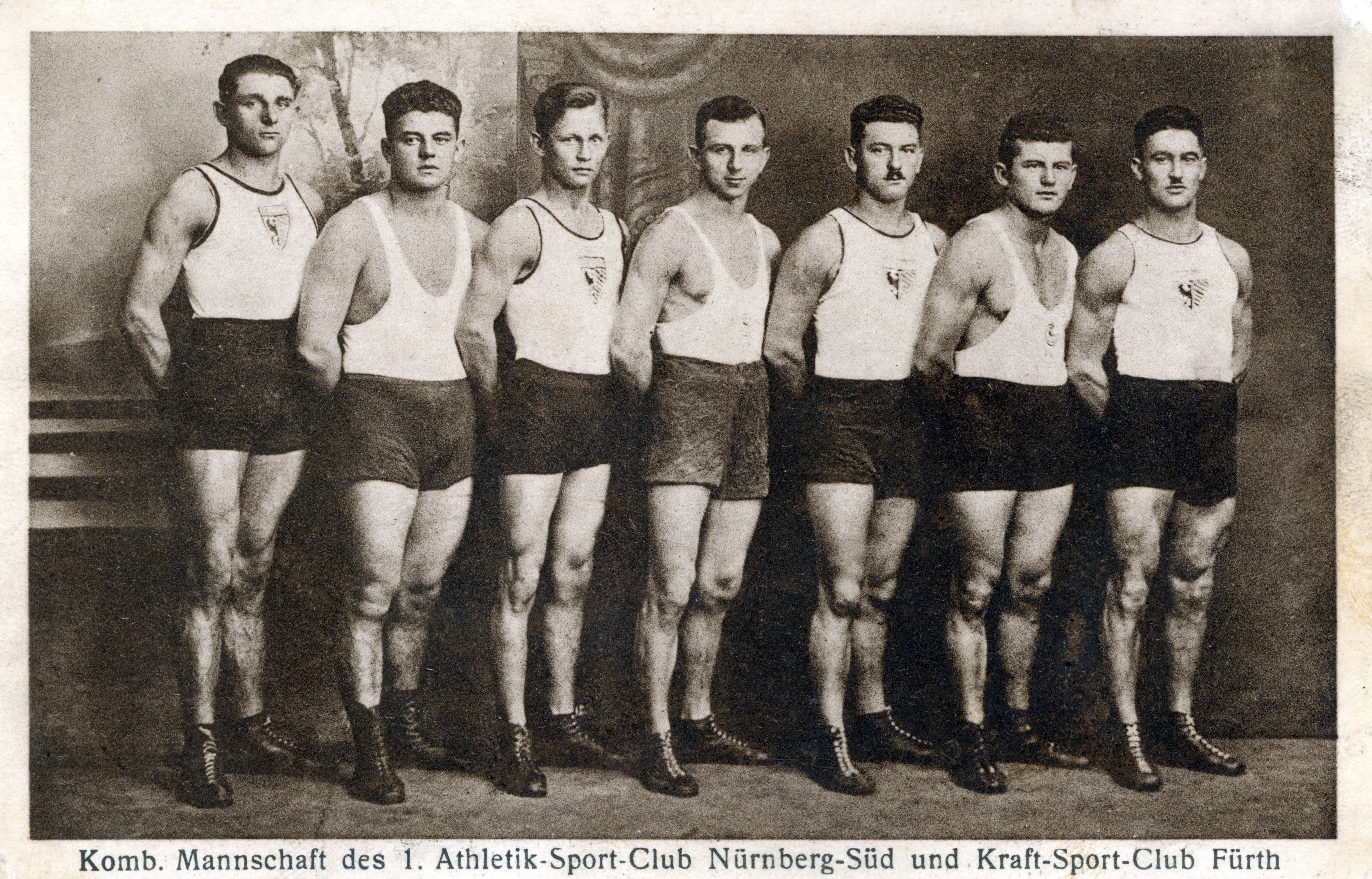 | Beschreibung | Kombinationsmannschaft des 1. Athletik-Sport-Club Nürnberg-Süd und Kraft-Sport-Club Fürth, ngl. ca. 1910 | ||