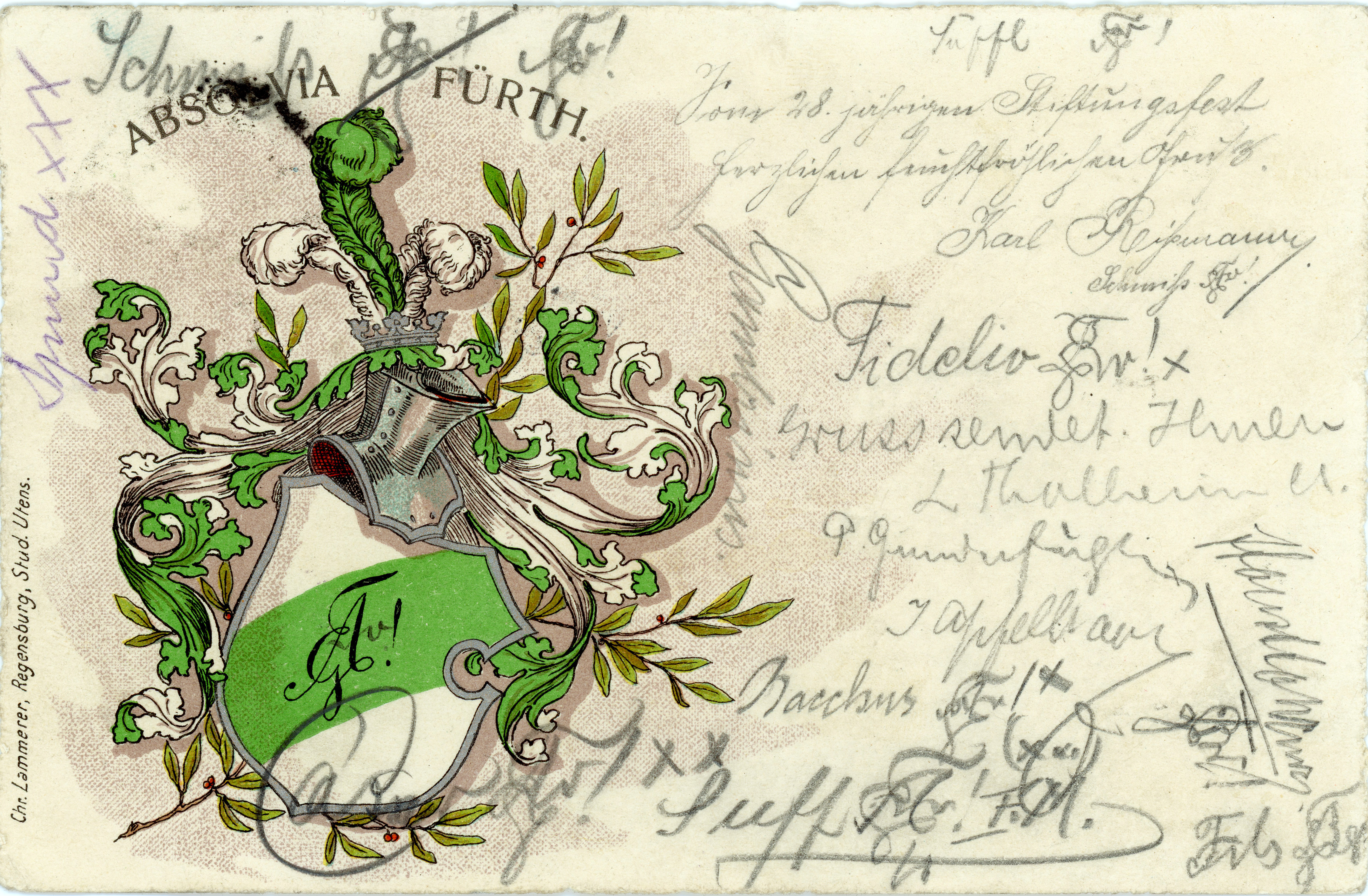 | Beschreibung | Ansichtskarte der Absolvia, gel. Mai 1905 | ||
