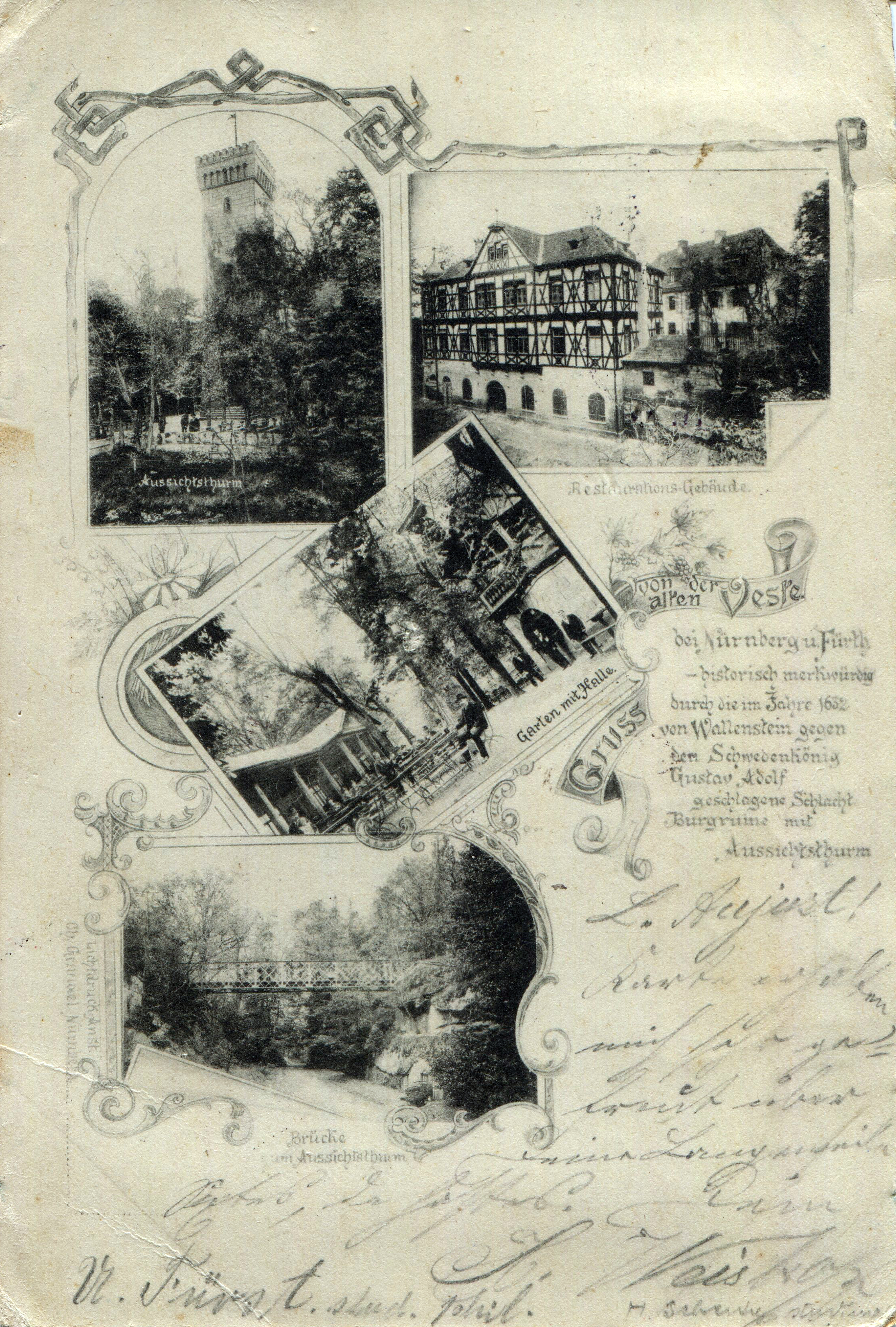 | Dateiinfo (Bild-Unterschrift und Info-Box, automatisch erstellt) | Alte Ansichtskarte von der Alten Veste, gel. 1908 Urheber: unbekannt<br><br>Lizenz: CC BY-SA 3.0 | ||