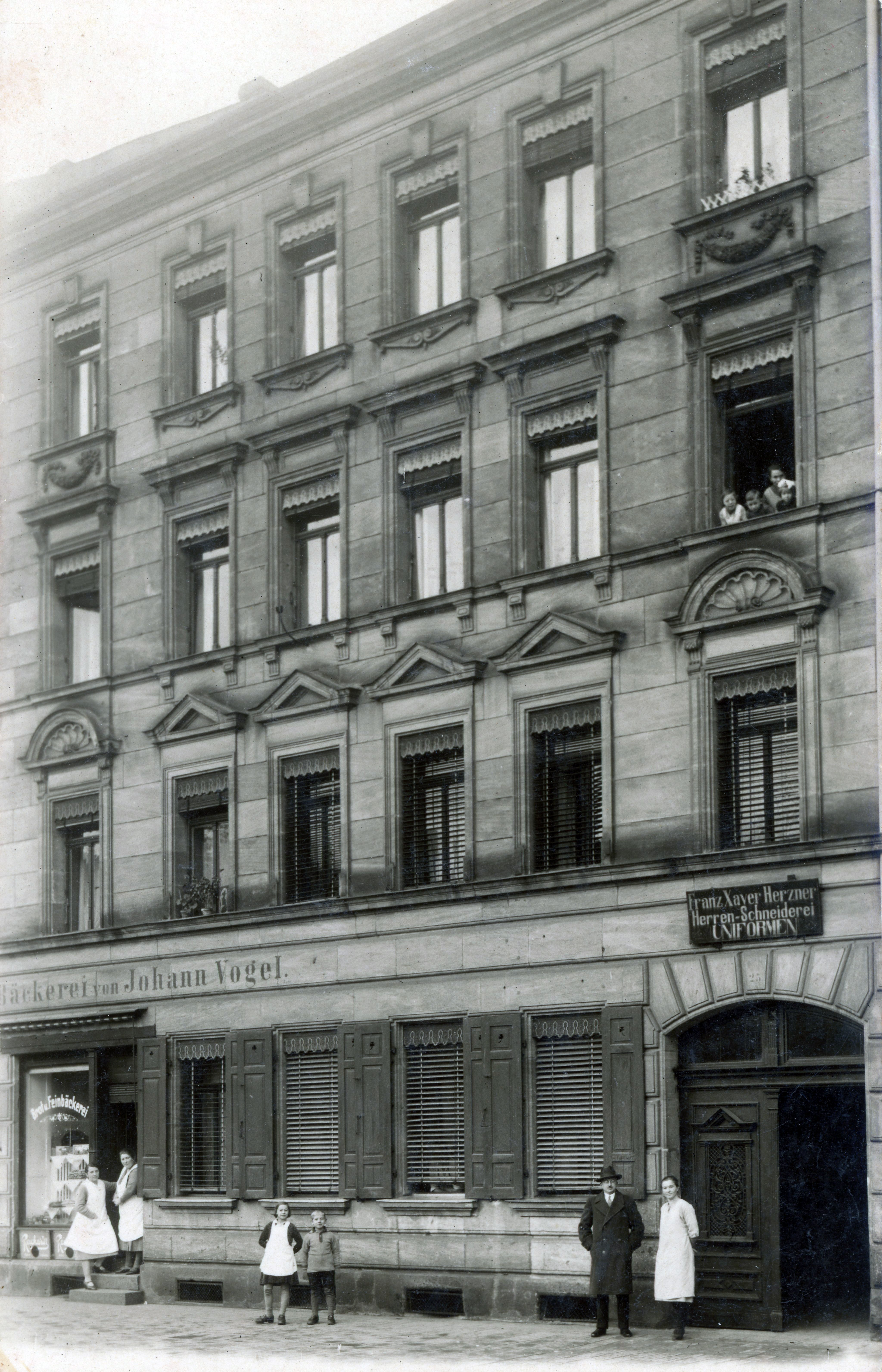 | Beschreibung | Ansichtskarte mit der Bäckerei Johann Vogel in der Amalienstraße 25, ngl ca. 1920 | ||