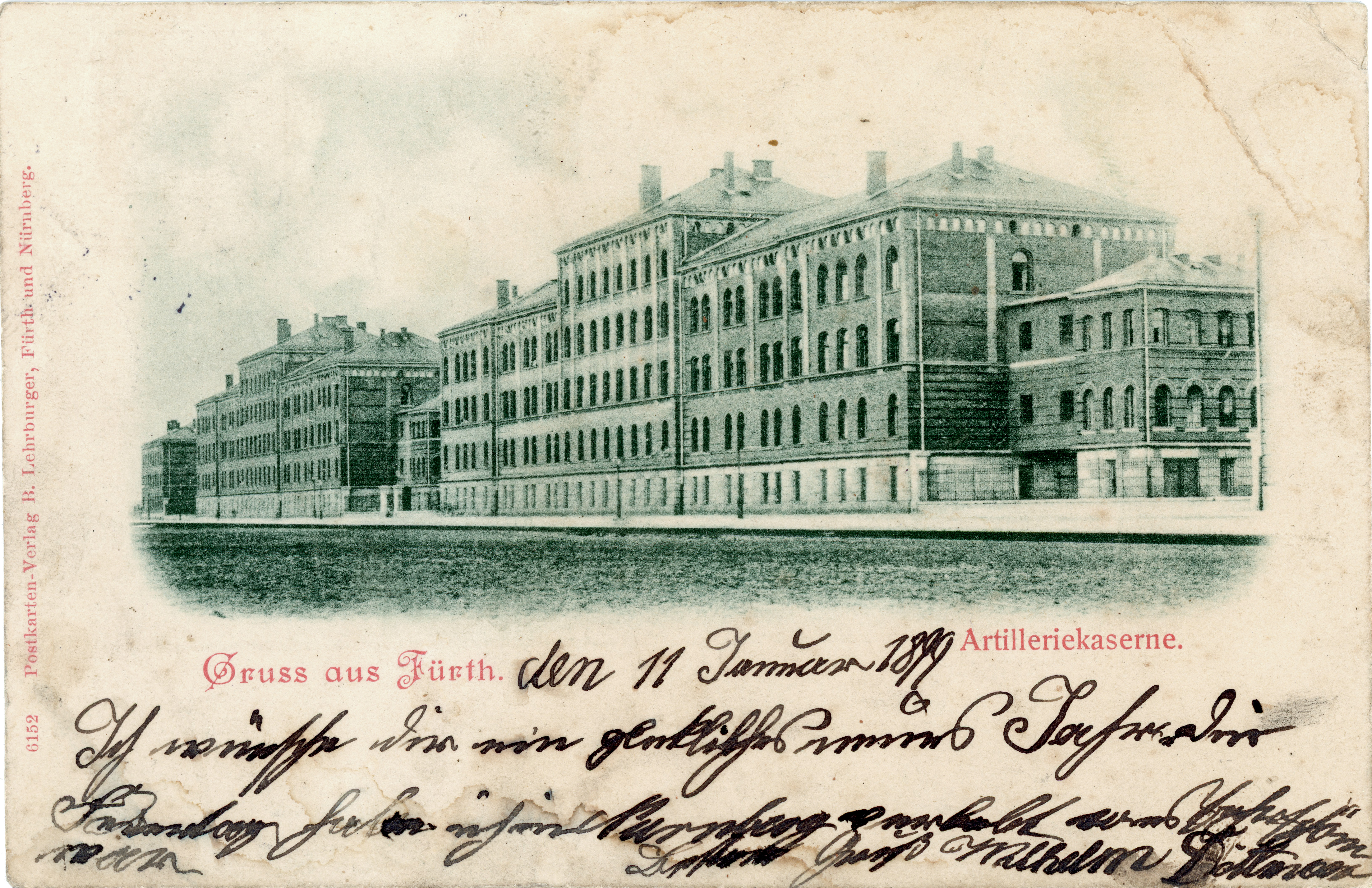 | Beschreibung | Alte Ansichtskarte der Artilleriekaserne in der Südstadt, gel. Jan. 1899 | ||