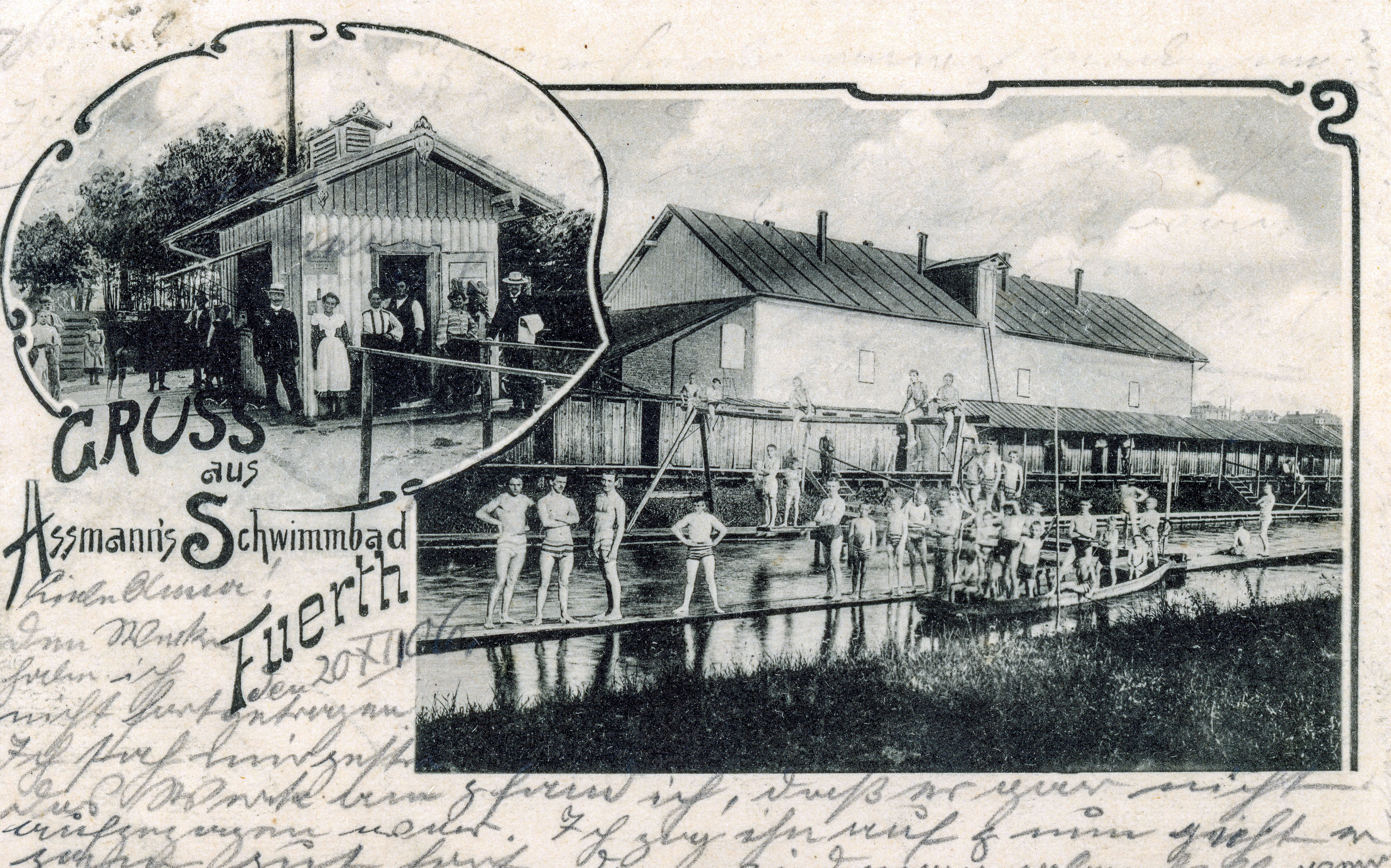 | Dateiinfo (Bild-Unterschrift und Info-Box, automatisch erstellt) | Das Assmann Schwimmbad in der Badstraße als Ansichtskarte, gel. Nov 1906 Lizenz: CC BY-SA 4.0 | ||