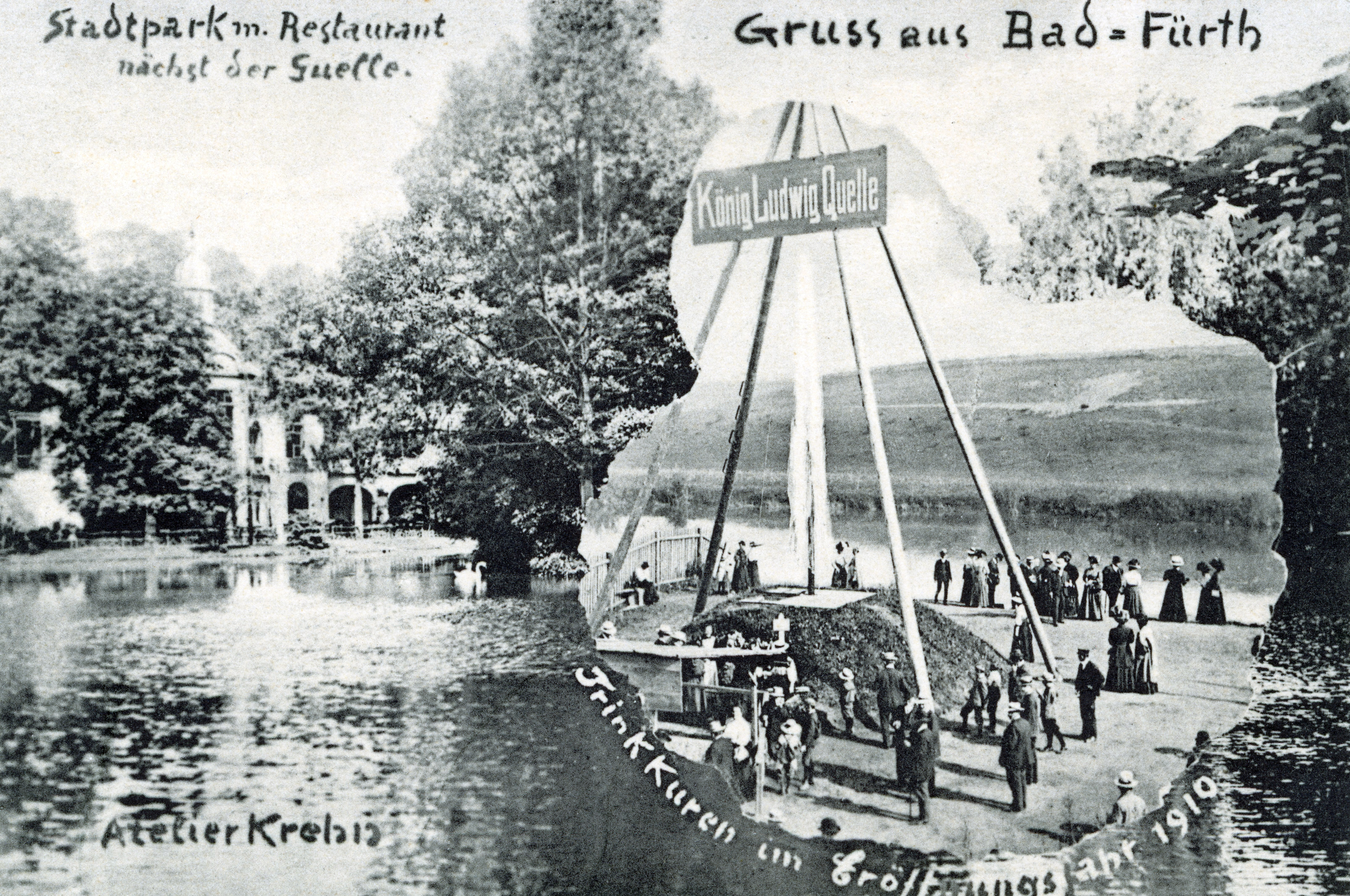 | Dateiinfo (Bild-Unterschrift und Info-Box, automatisch erstellt) | Ansichtskarte der Eröffnung der König Ludwig Quelle, ngl. 1910 Urheber: unbekannt<br><br>Lizenz: CC BY-SA 4.0 | ||