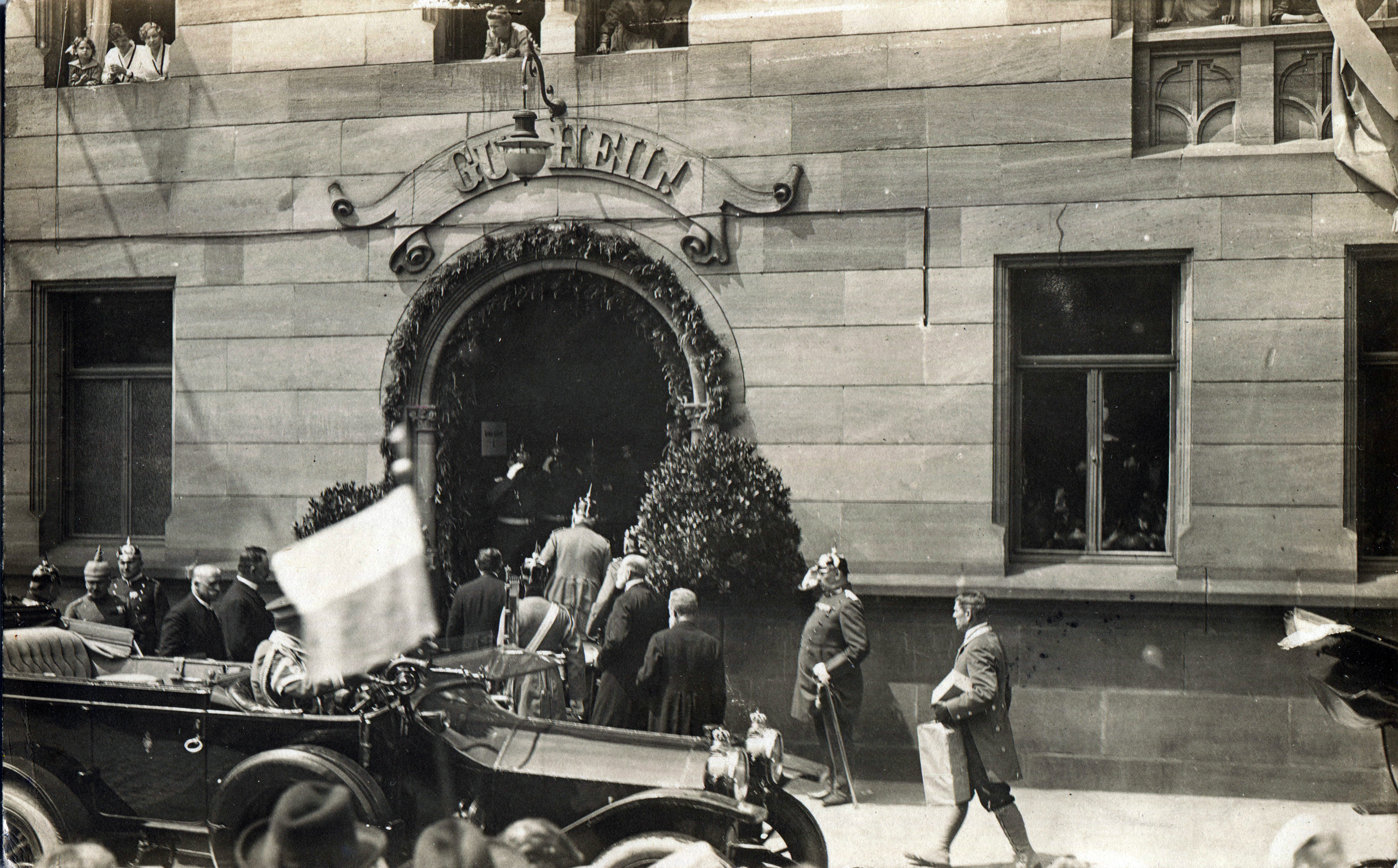| Beschreibung | Besuch König Ludwig III. in der ehem. Turnhalle des TV Fürth 1860 e. V. in der Turnstraße 10, gel. 1915 | ||