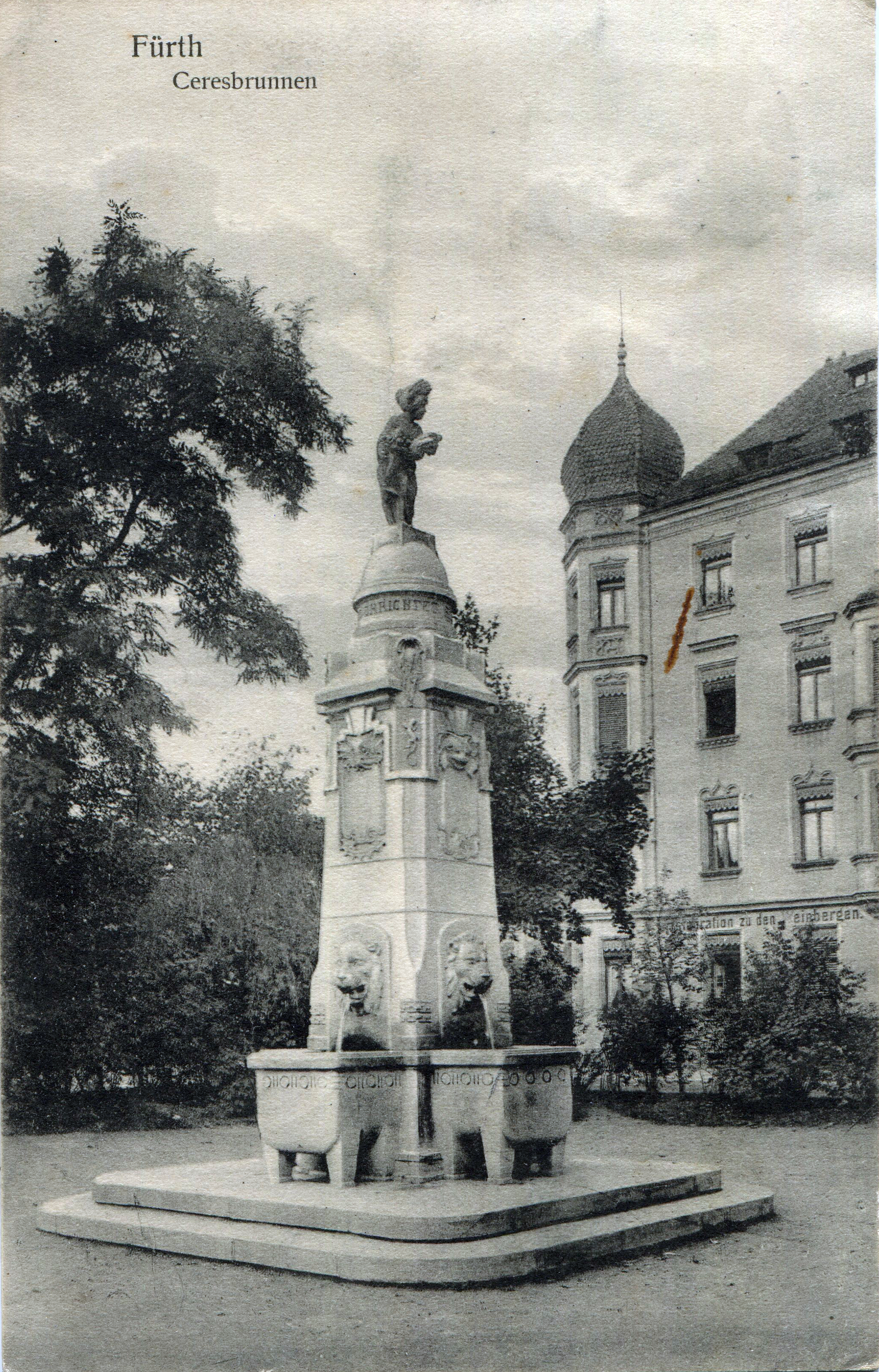 | Beschreibung | Ceresbrunnen an der Billinganlage, gel. 1912 | ||