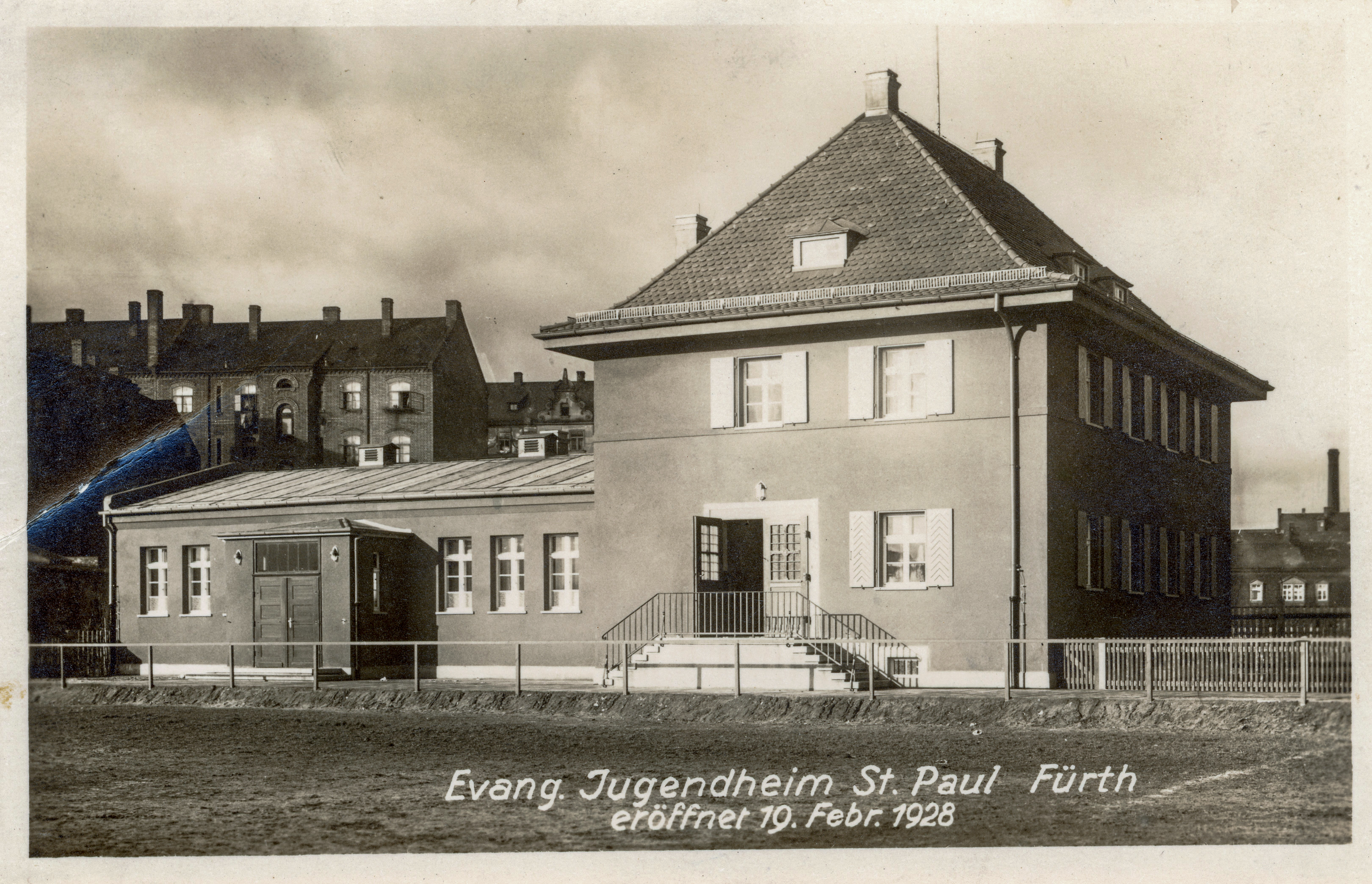 | Beschreibung | Evang. Jugendheim der Kirche St. Paul in der Südstadt, eröffnet Feb. 1928 | ||