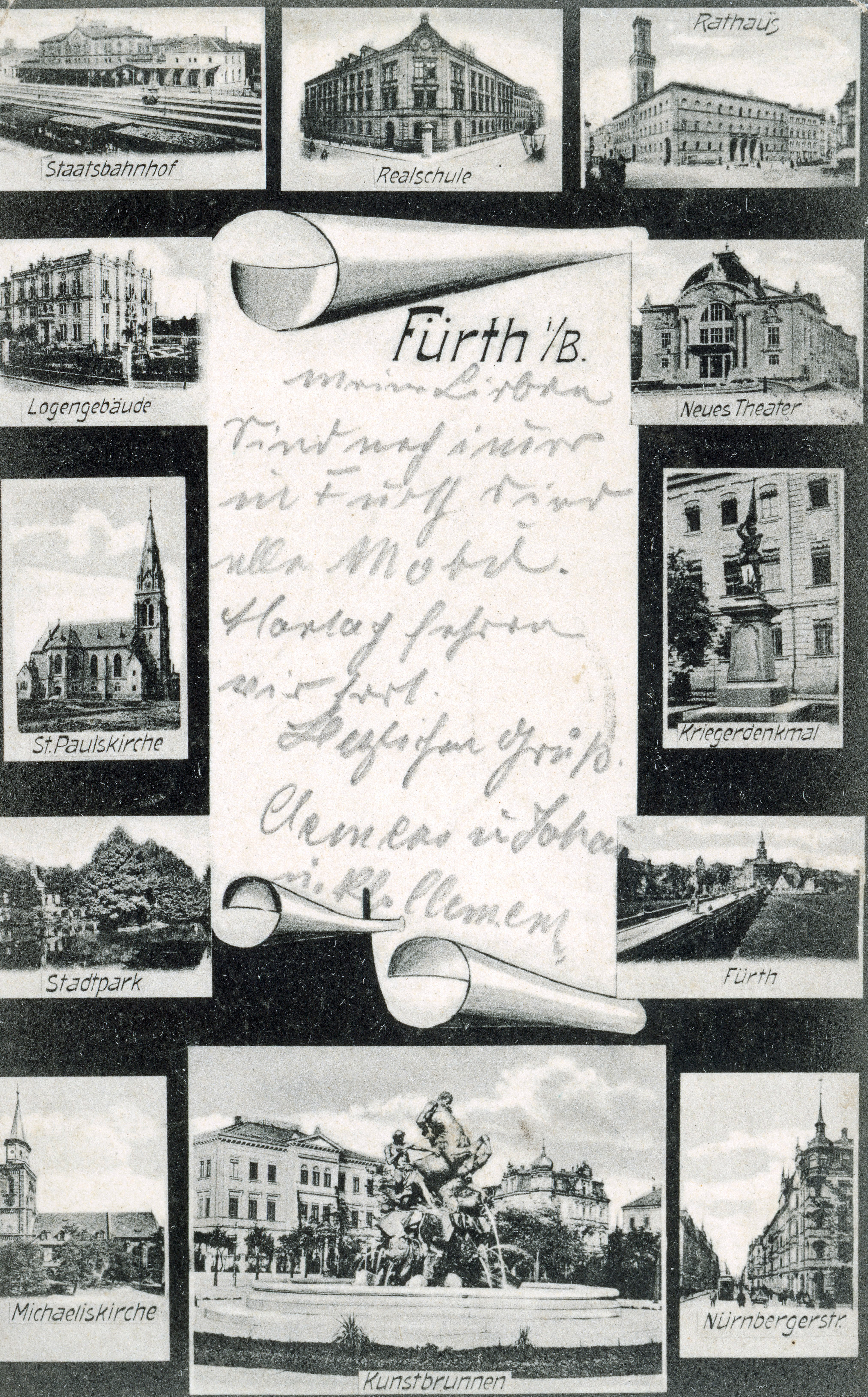 | Datei:AK Gruß aus Fürth div Motive gel 30 Nov 1907.jpg | |||