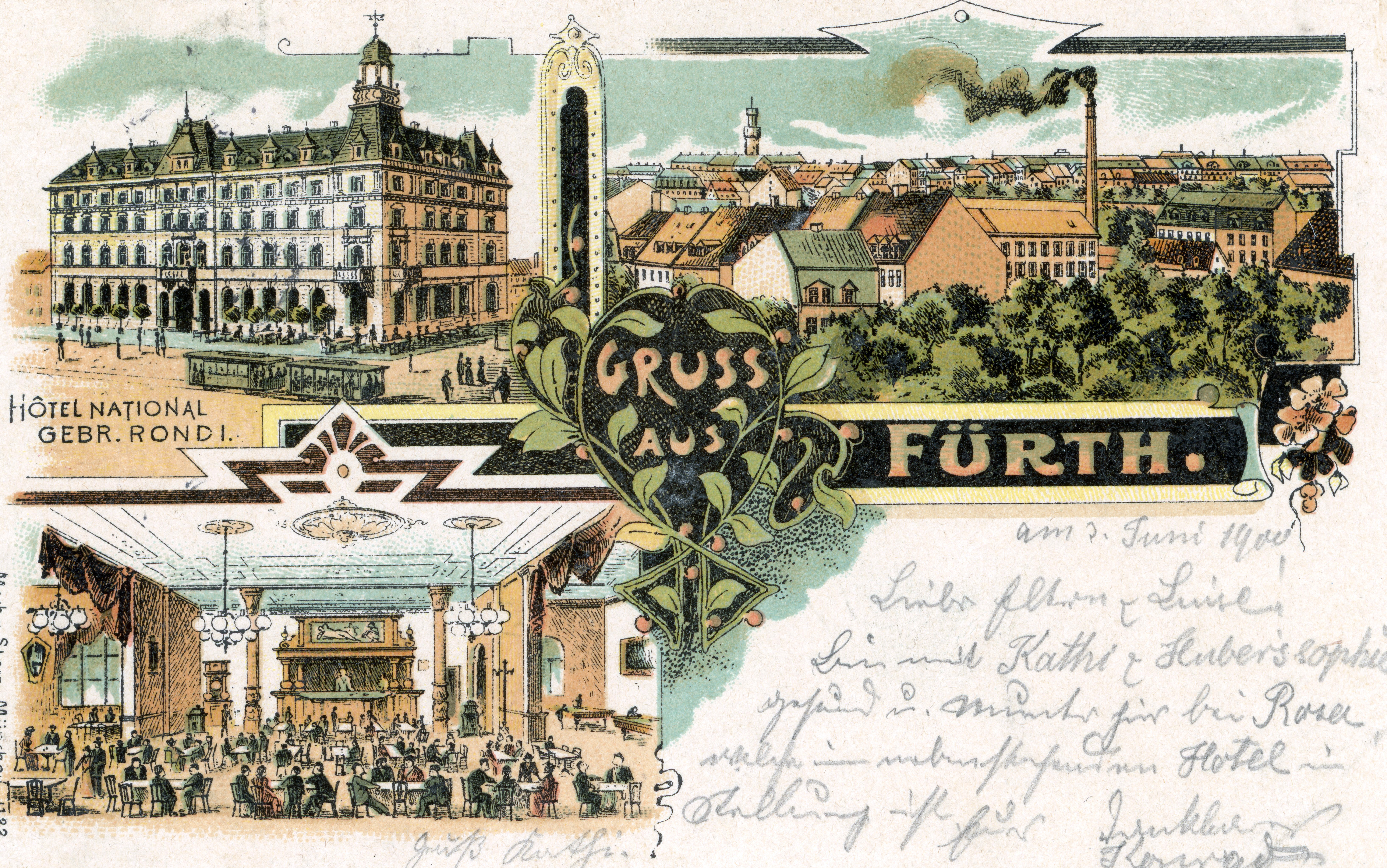 | Beschreibung | Ansichtskarte des ehem. Hotel National, gel. Juni 1900 | ||