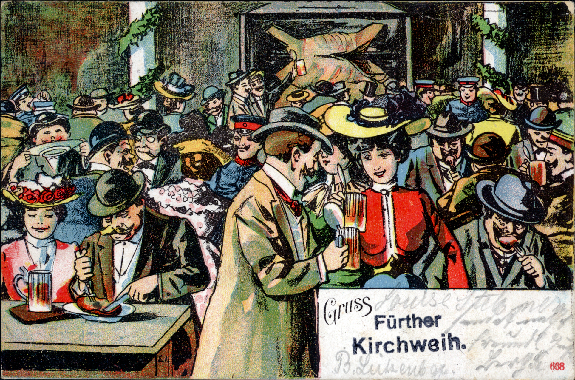 | Dateiinfo (Bild-Unterschrift und Info-Box, automatisch erstellt) | Gruß von der Fürther Kirchweih, historische Ansichtskarte, um 1900 Lizenz: CC BY-SA 3.0 | ||