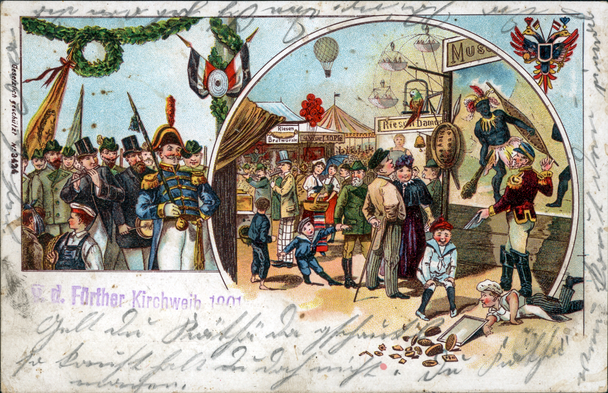 | Beschreibung | Gruß von der Fürther Kirchweih, historische Ansichtskarte, um 1901 | ||