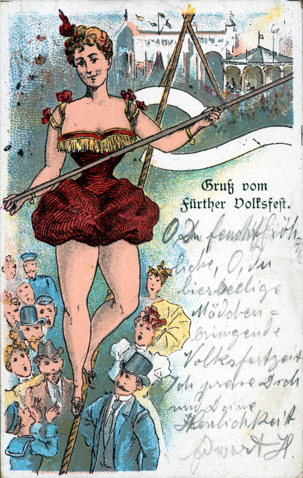 | Beschreibung | Gruß von der Fürther Kirchweih, historische Ansichtskarte, um 1905 | ||