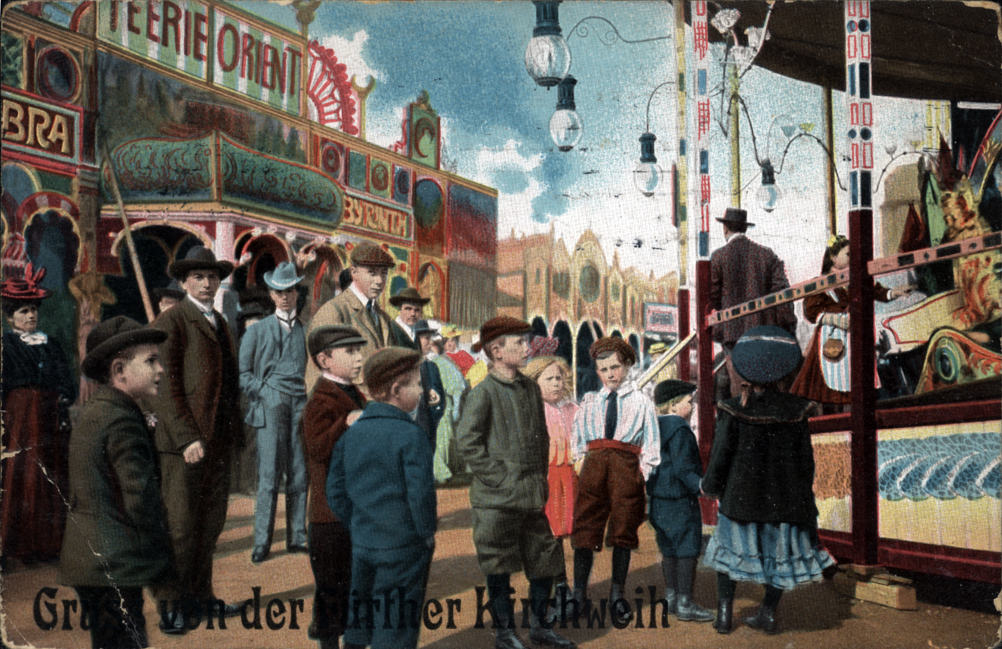 | Beschreibung | Gruß von der Fürther Kirchweih, historische Ansichtskarte, um 1905 | ||