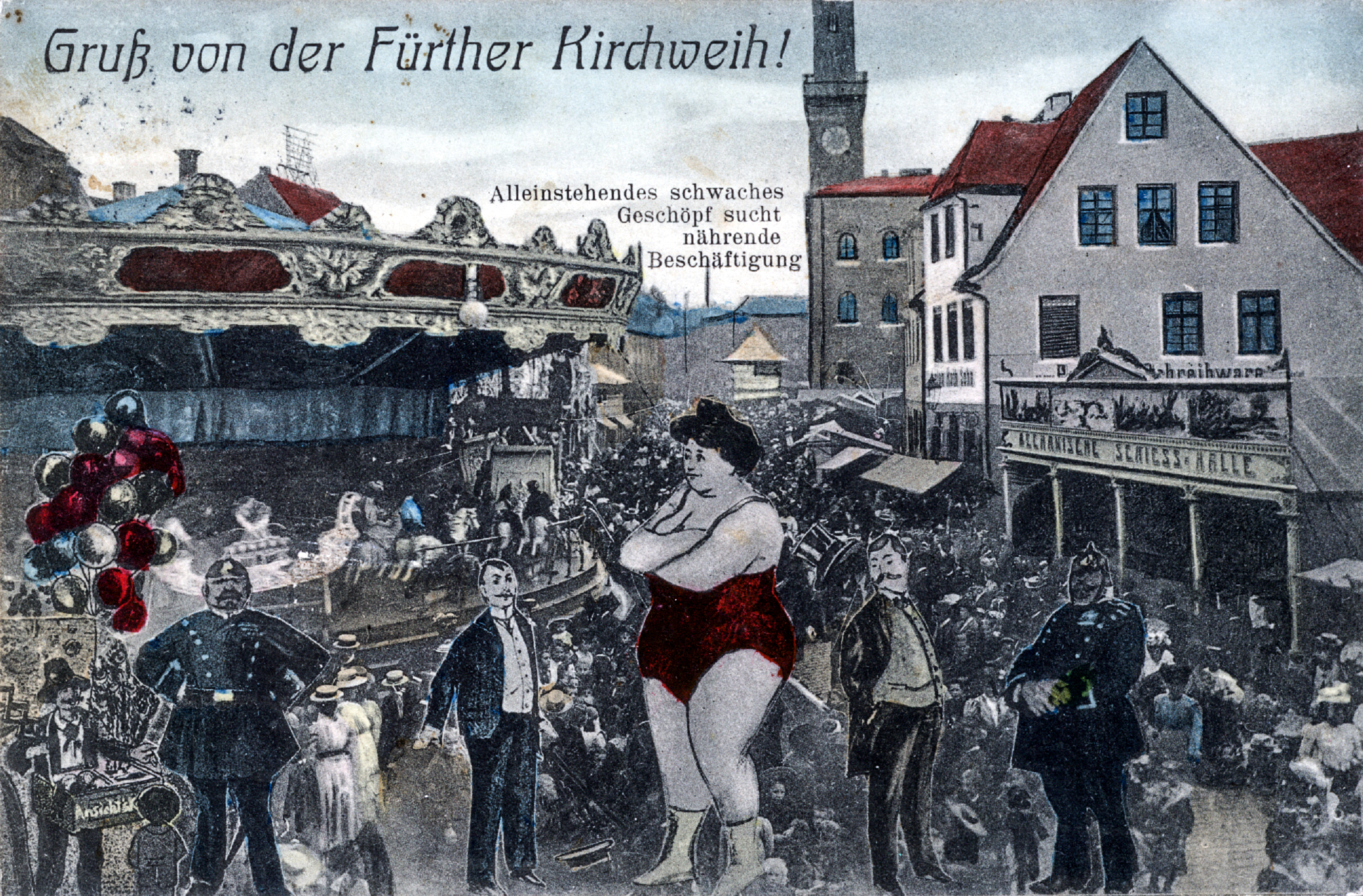 | Dateiinfo (Bild-Unterschrift und Info-Box, automatisch erstellt) | Gruß von der Fürther Kirchweih, historische Ansichtskarte, um 1905 Lizenz: CC BY-SA 3.0 | ||