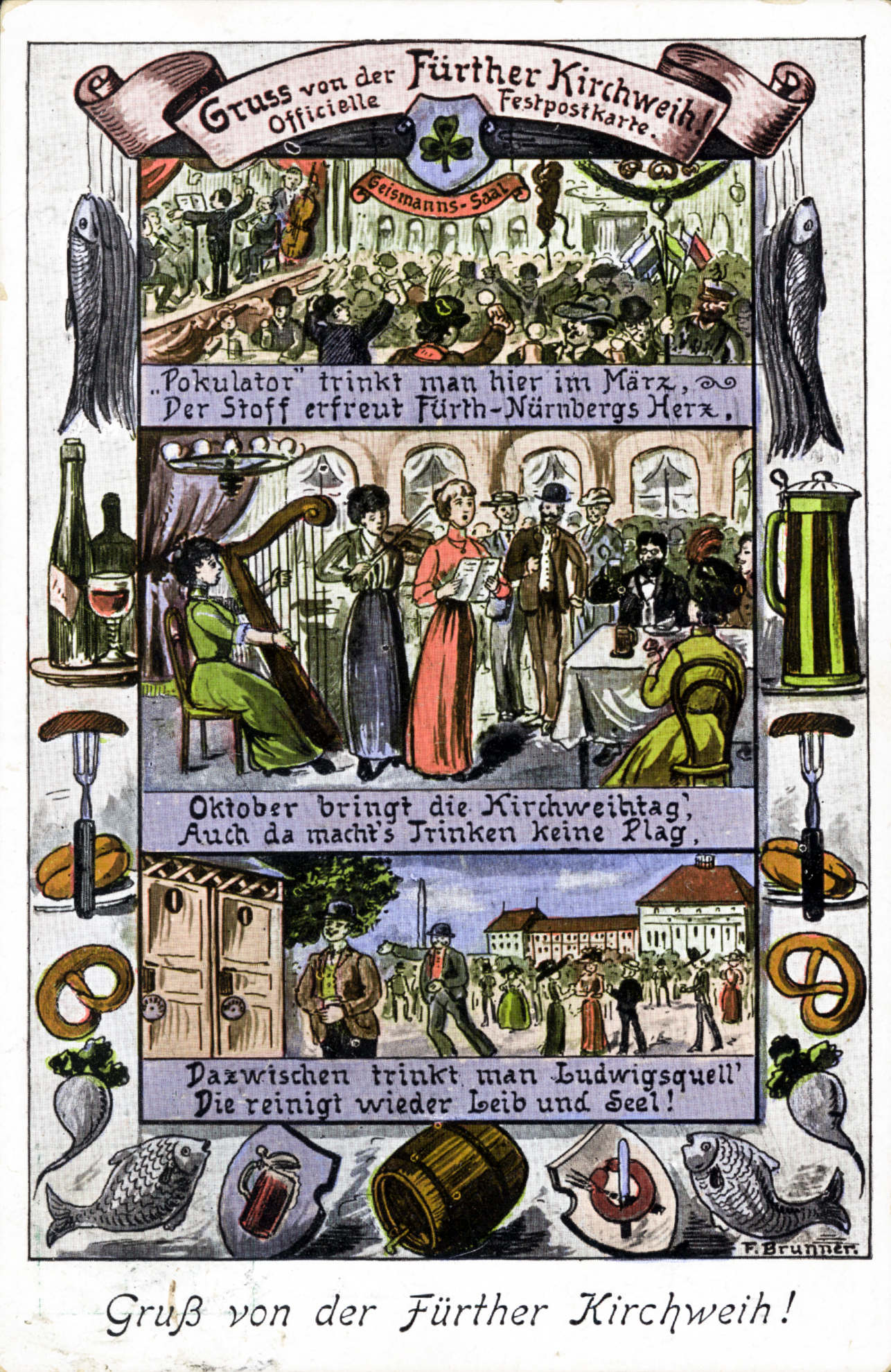 | Beschreibung | Gruß von der Fürther Kirchweih, historische Ansichtskarte, um 1905 | ||