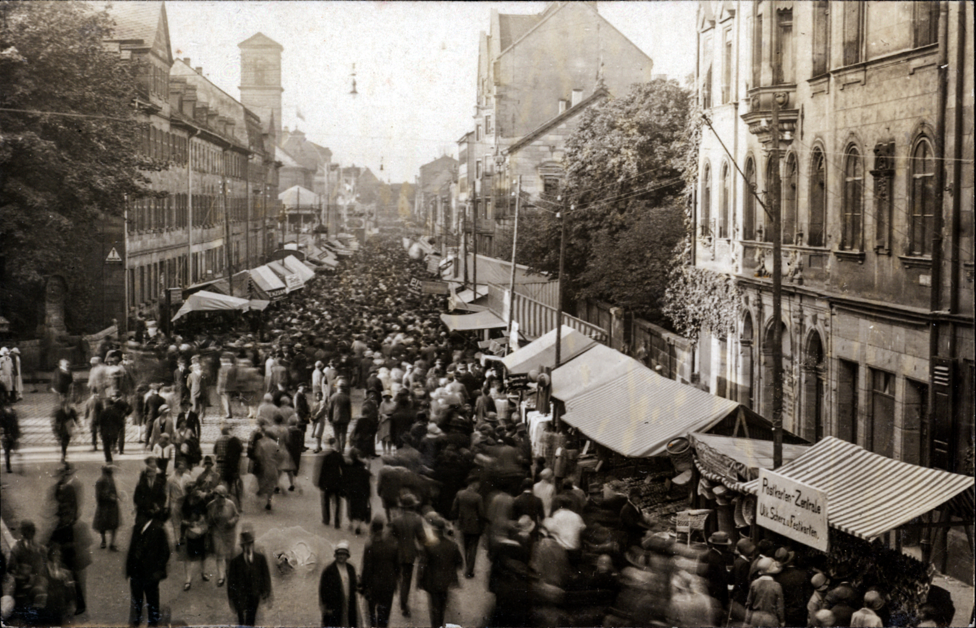 | Beschreibung | Gruß von der Fürther Kirchweih, historische Ansichtskarte mit Blick in die Nürnberger Straße, um 1910 | ||