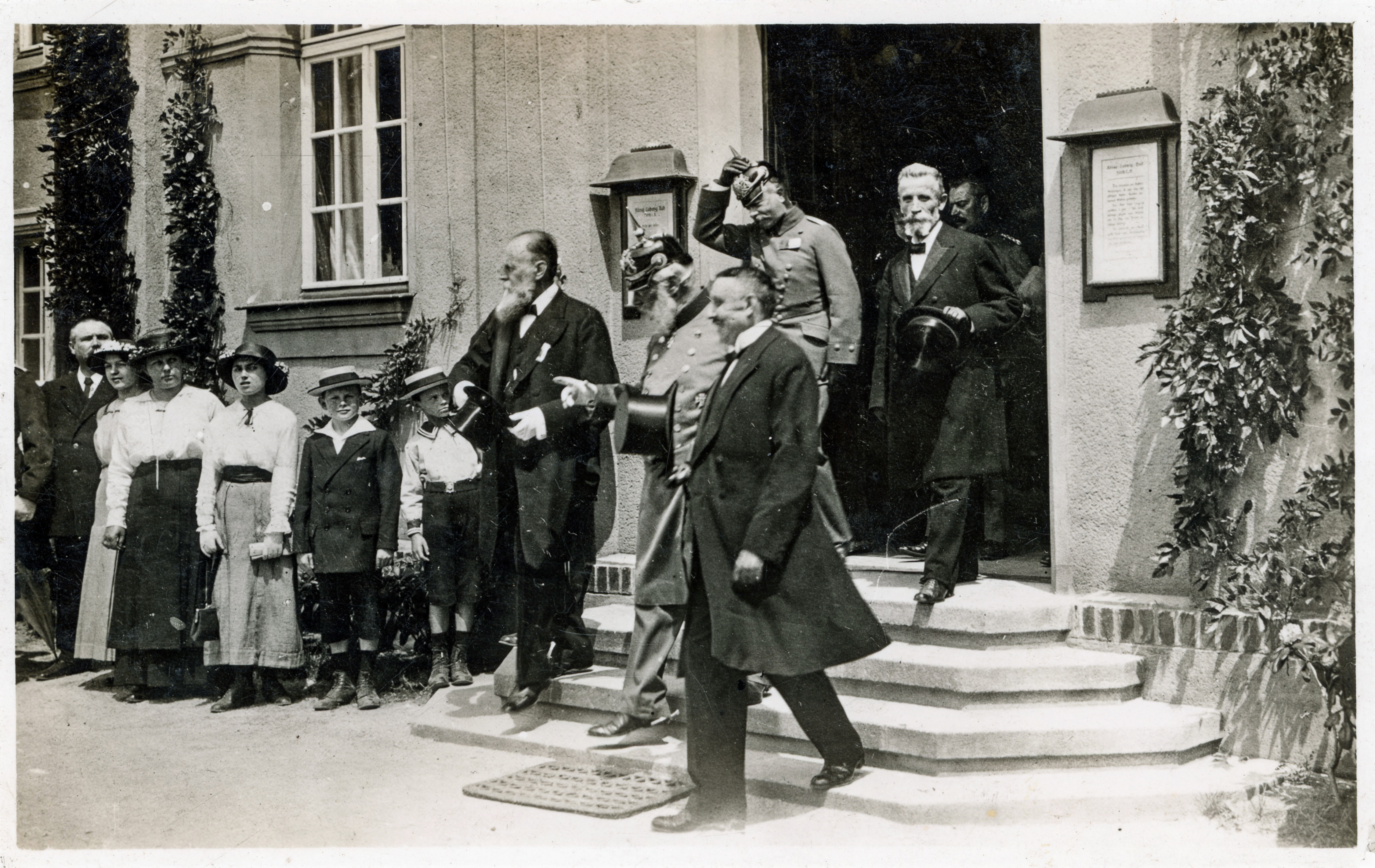 | Beschreibung | König Ludwig III. im Ludwigsbad, rechts neben ihm OB Robert Wild, 1915 | ||