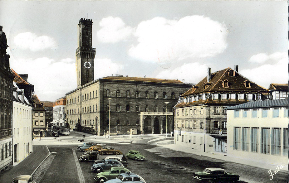 | Dateiinfo (Bild-Unterschrift und Info-Box, automatisch erstellt) | Rathaus mit Königsplatz, Postkarte 1970 gelaufen Urheber: unbekannt<br><br><br>Lizenz: CC BY-SA 3.0 | ||