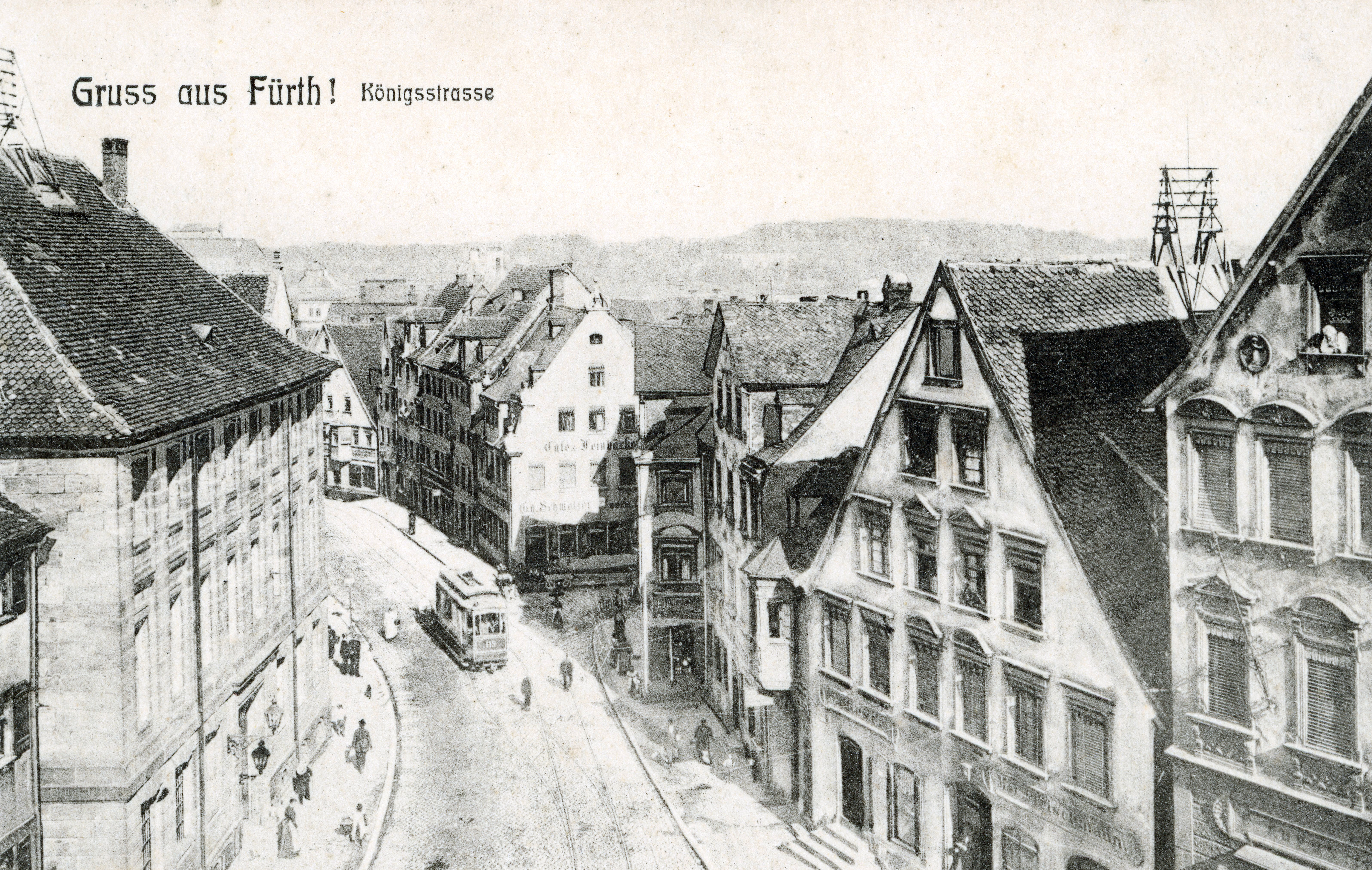 | Beschreibung | Ansichtskarte mit Blick in die untere Königstraße, gel. Aug 1907 | ||
