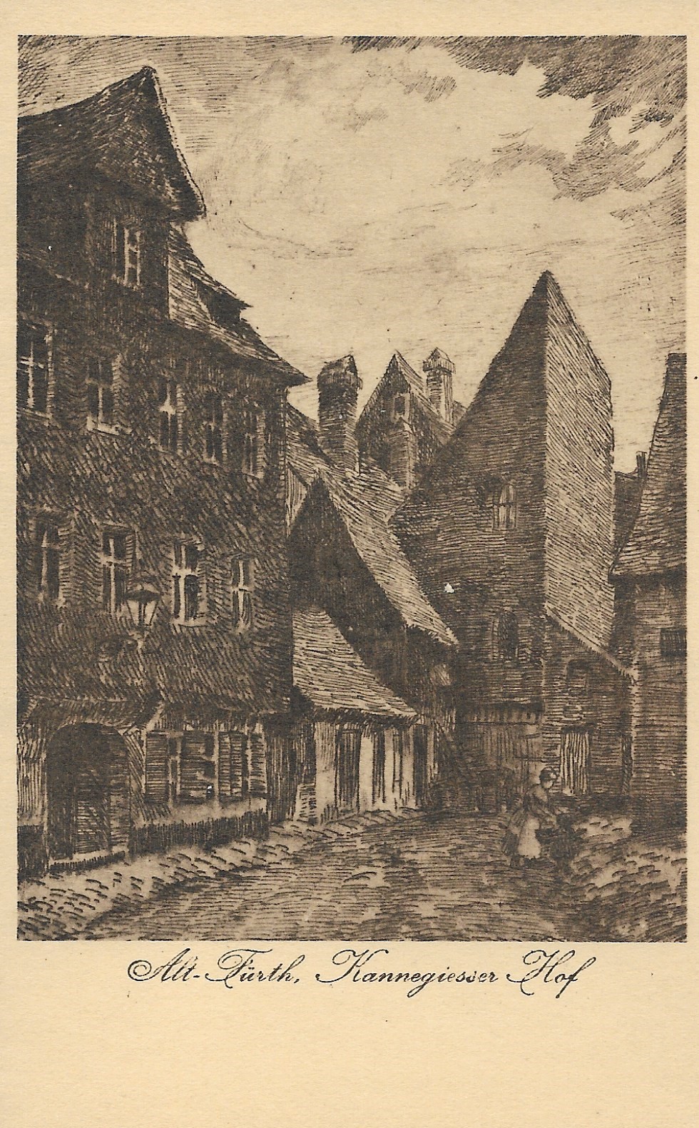 | Beschreibung | Ansichtskarte "Alt-Fürth, Kannegiesserhof"; Jahr unbekannt | ||