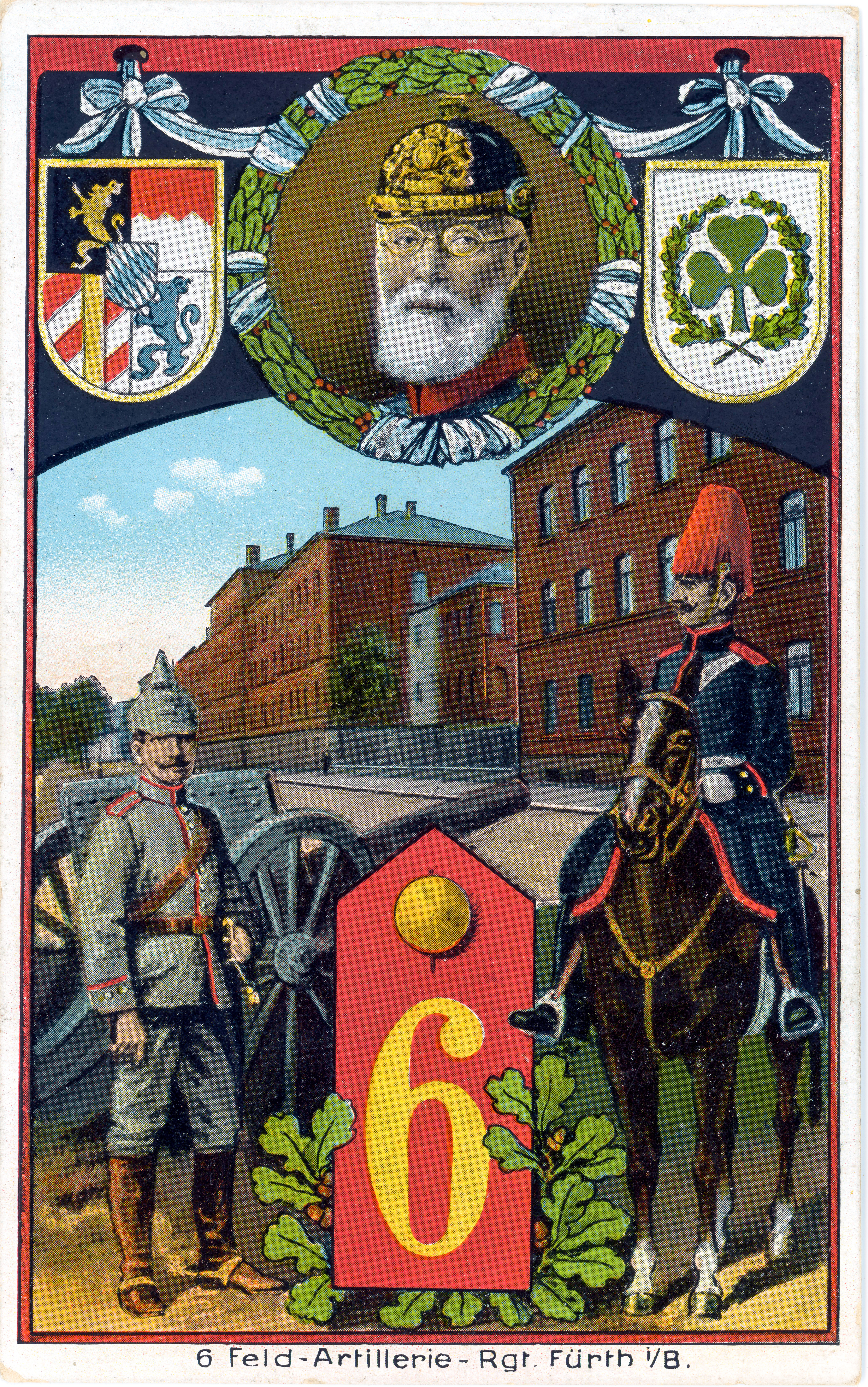 BeschreibungAnsichtskrate der Königlich Bayerisches 6. Feldartillerie-Regiment „Prinz Ferdinand von Bourbon, Herzog von Calabrien“ in Fürth, gel. 1918