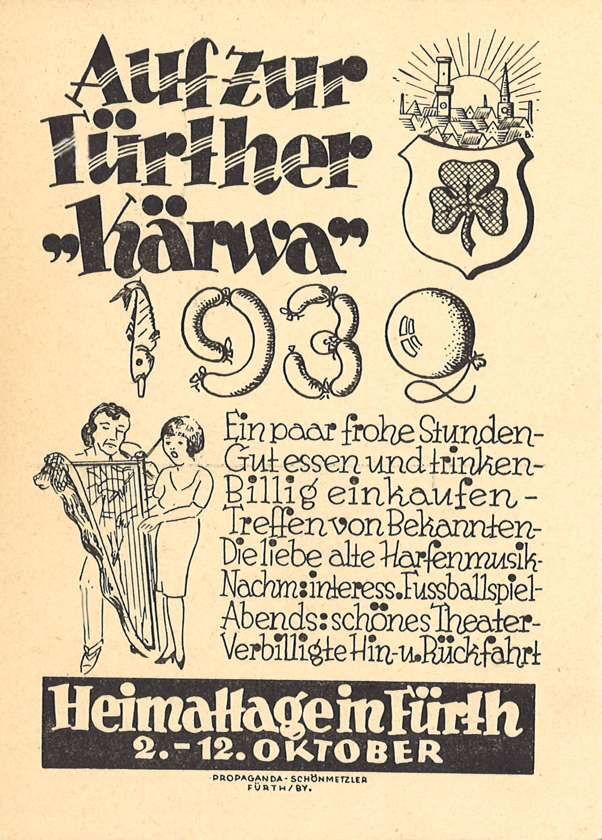 | Beschreibung | Werbung für die Fürther Kirchweih, historische Ansichtskarte, 1932 | ||