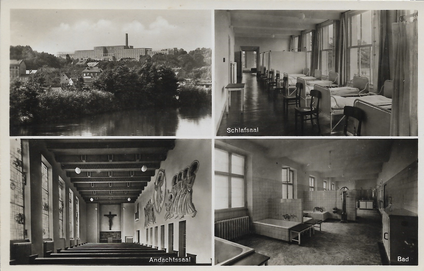 | Beschreibung | Historische Ansichtskarte von Innenräumen des Klinikums, gel. 1932 | ||