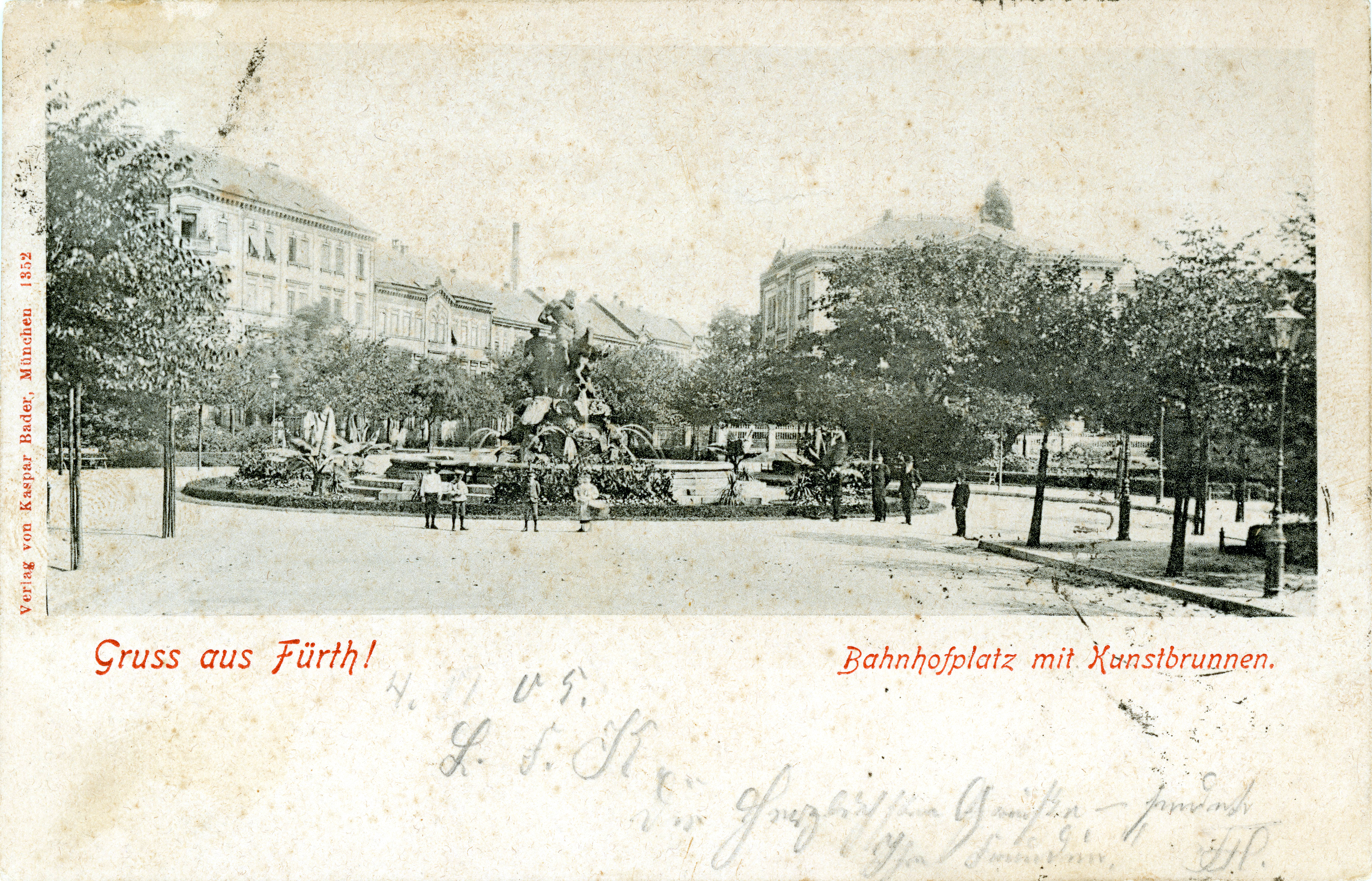 | Beschreibung | Der Centaurenbrunnen, alte Ansichtskarte vom Bahnhofplatz um 1905 | ||