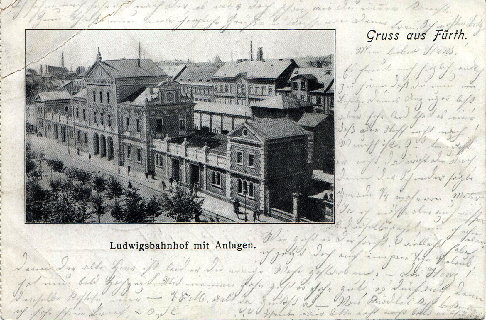 | Beschreibung | Der ehem. Ludwigsbahnhof auf einer Ansichtskarte, gel. 1900 | ||