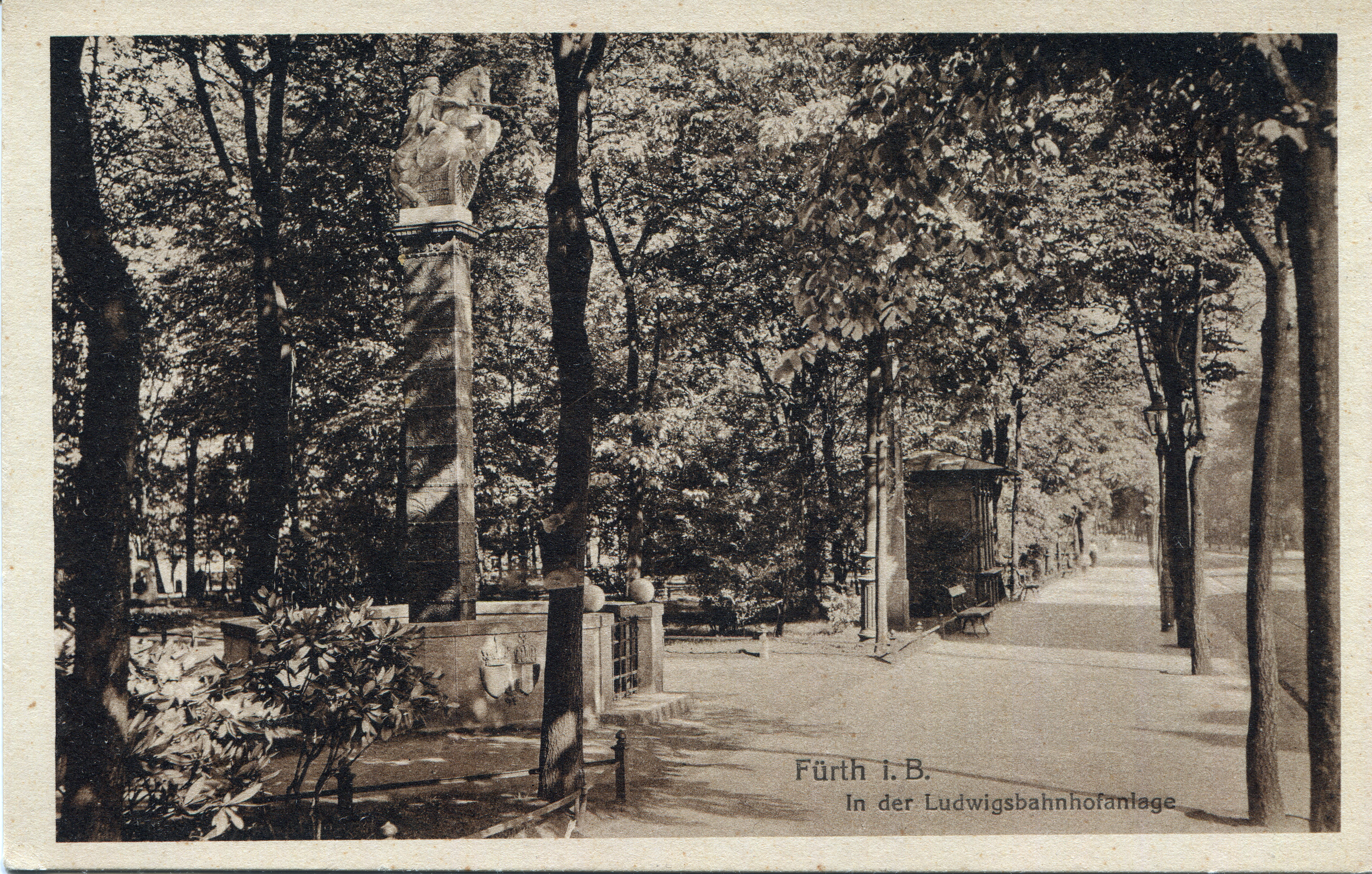 BeschreibungAnsichtskarte von der Ludwigsbahnhofsanlage bzw. Englischen Anlage, der heutigen Dr.-Konrad-Adenauer-Anlage, ungel. 1916