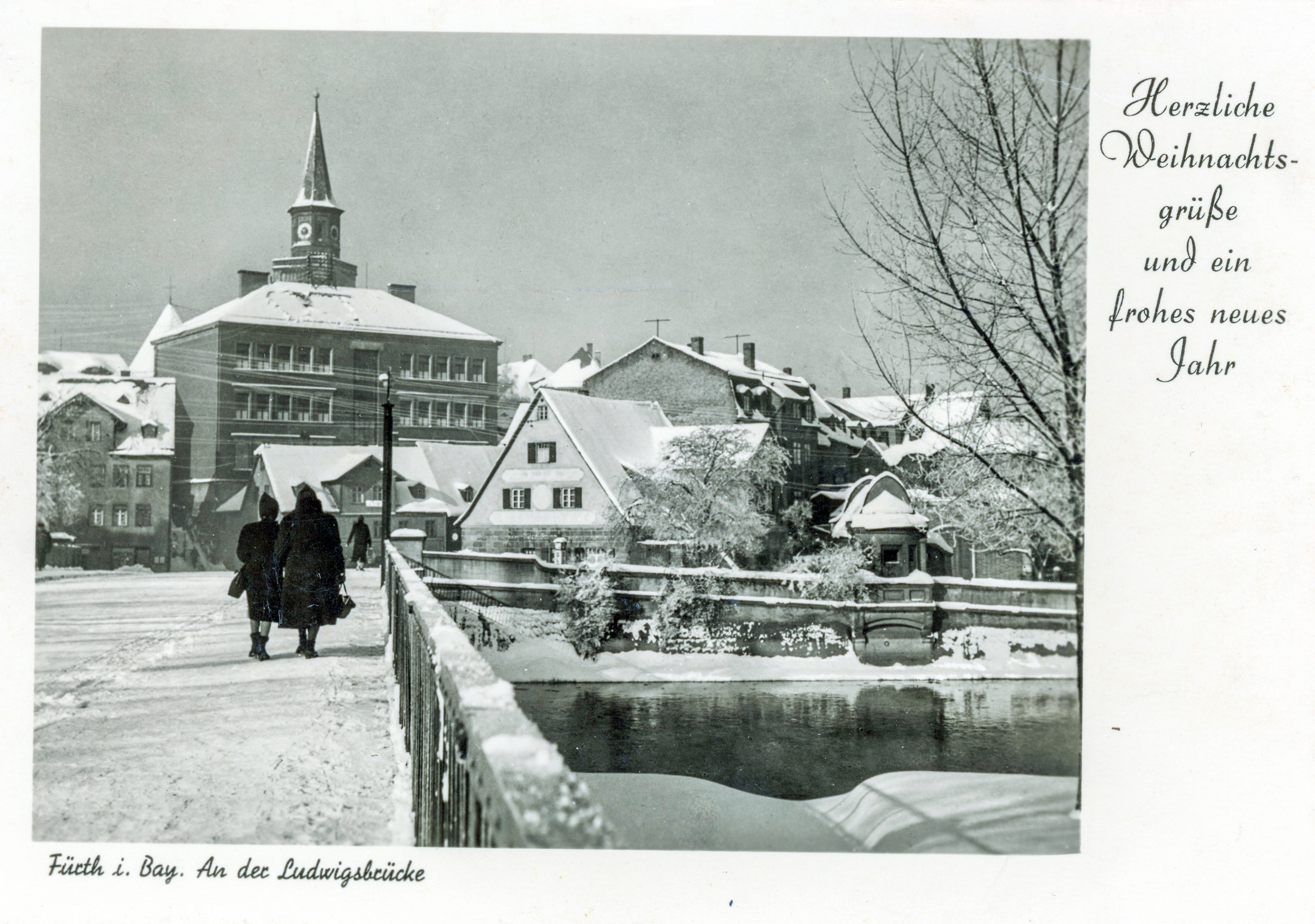 | Beschreibung | Blick über die Ludwigsbrücke mit Neujahreswünschen, gel. 1951 | ||
