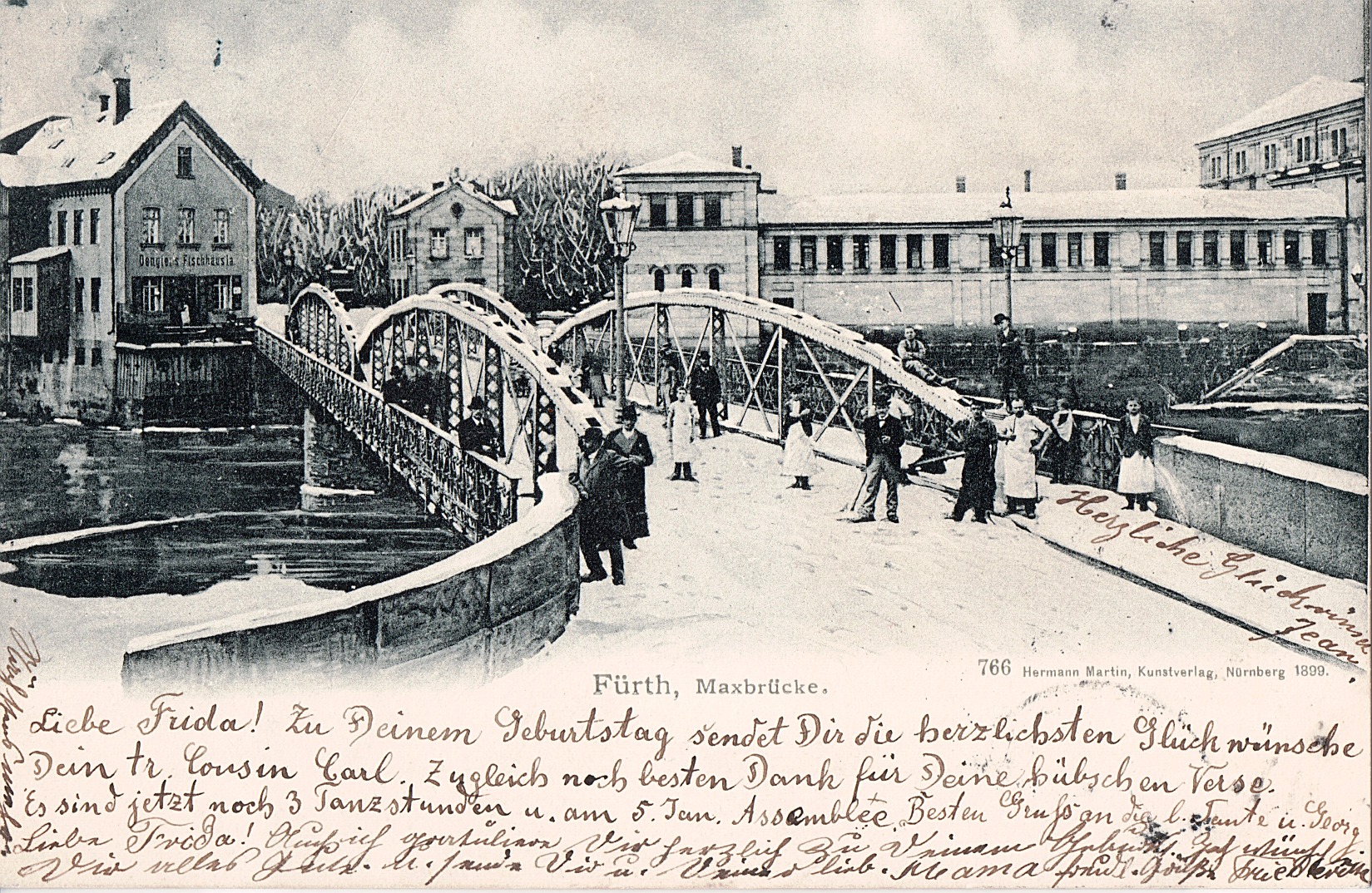 | Beschreibung | Die Maxbrücke im Winter, historische Ansichtskarte von 1901 | ||
